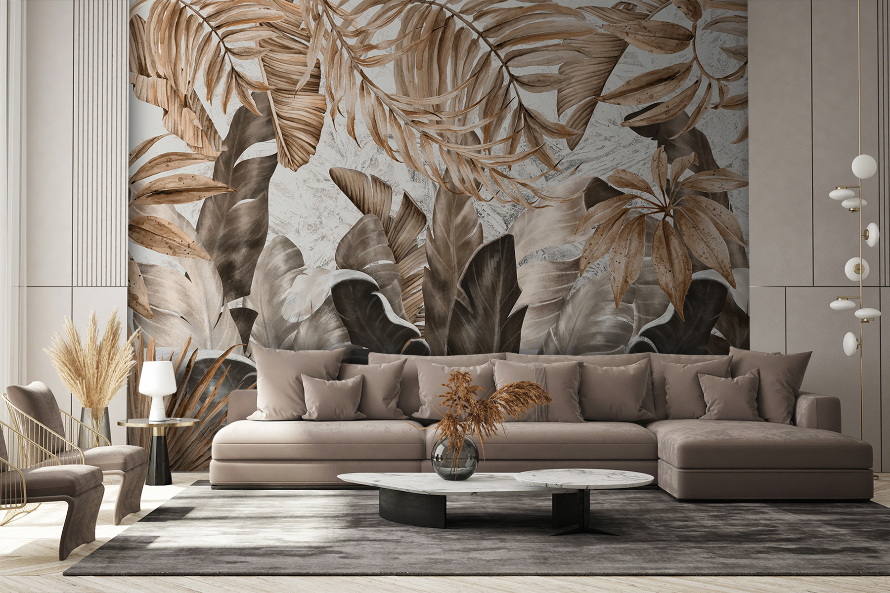 Imaginez que vous entrez dans votre salon et que vous avez l’impression d’avoir été transporté dans un paradis tropical serein. C’est exactement ce que fait cette peinture murale “Feuilles tropicales dans des tons terreux”. Il est composé de superbes feuilles surdimensionnées aux teintes riches et terreuses qui apportent une touche de nature à votre intérieur. Il ne s’agit pas d’un simple papier peint à la mode, mais d’une œuvre d’art moderne géante qui s’affiche sur votre mur.
