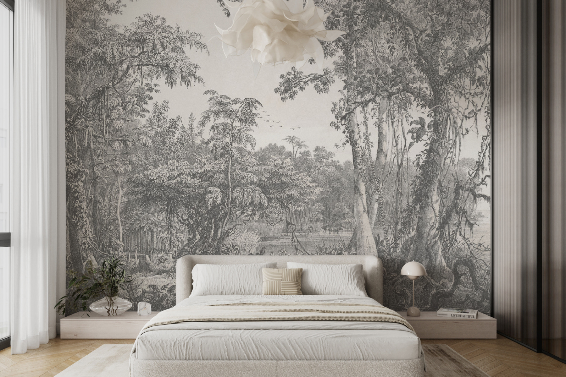 Voyez exactement à quoi ressemblera votre espace avec un nouveau papier peint avant d’acheter. Visualisation professionnelle par des designers experts, sans aucun coût ni obligation d’achat.
