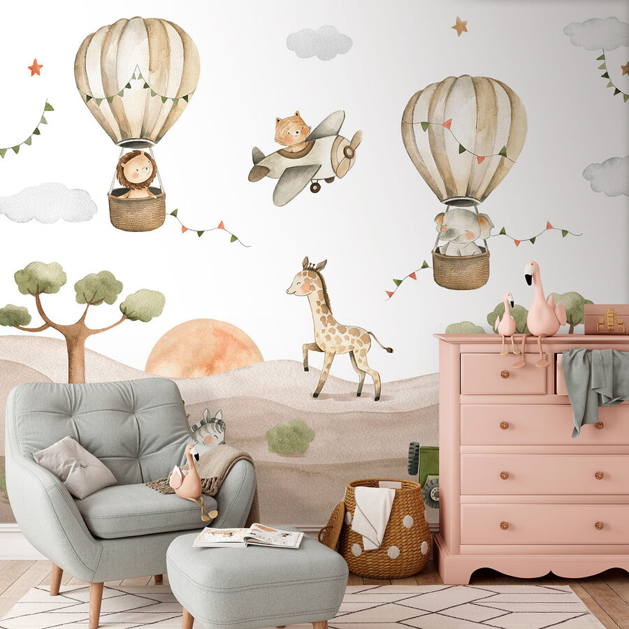 Regardez ça : une peinture murale intitulée “Un singe chevauchant un zèbre” ! Parfait pour la chambre de votre petit explorateur, qu’il aime les animaux ou qu’il ait simplement une imagination débordante. Imaginez : un singe chevauchant joyeusement un zèbre dans un paysage fantaisiste qui semble tout droit sorti d’une histoire à dormir debout. Des montgolfières, une girafe enjouée et une jeep sympathique complètent cette scène adorable. Imaginez votre enfant se réveiller tous les matins en ayant l’impression de vivre une aventure sans fin. Ce n’est pas seulement de l’art mural, c’est une étincelle pour raconter des histoires et rêvasser. C’est génial, non ? Cette peinture murale est un succès pour n’importe quelle chambre d’enfant, rendant leur espace amusant et tellement unique. Qui aurait cru que la décoration pouvait être aussi délicieuse ?