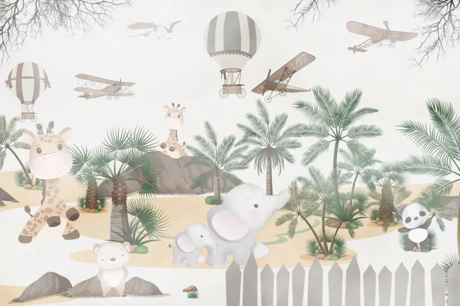 Vous pouvez presque entendre le bruissement des feuilles de palmier et voir les visages de vos enfants s’illuminer d’excitation et de curiosité. Donnez vie à l’imagination avec cette ravissante peinture murale, parfaite pour susciter la joie et l’inspiration dans l’espace d’un enfant.