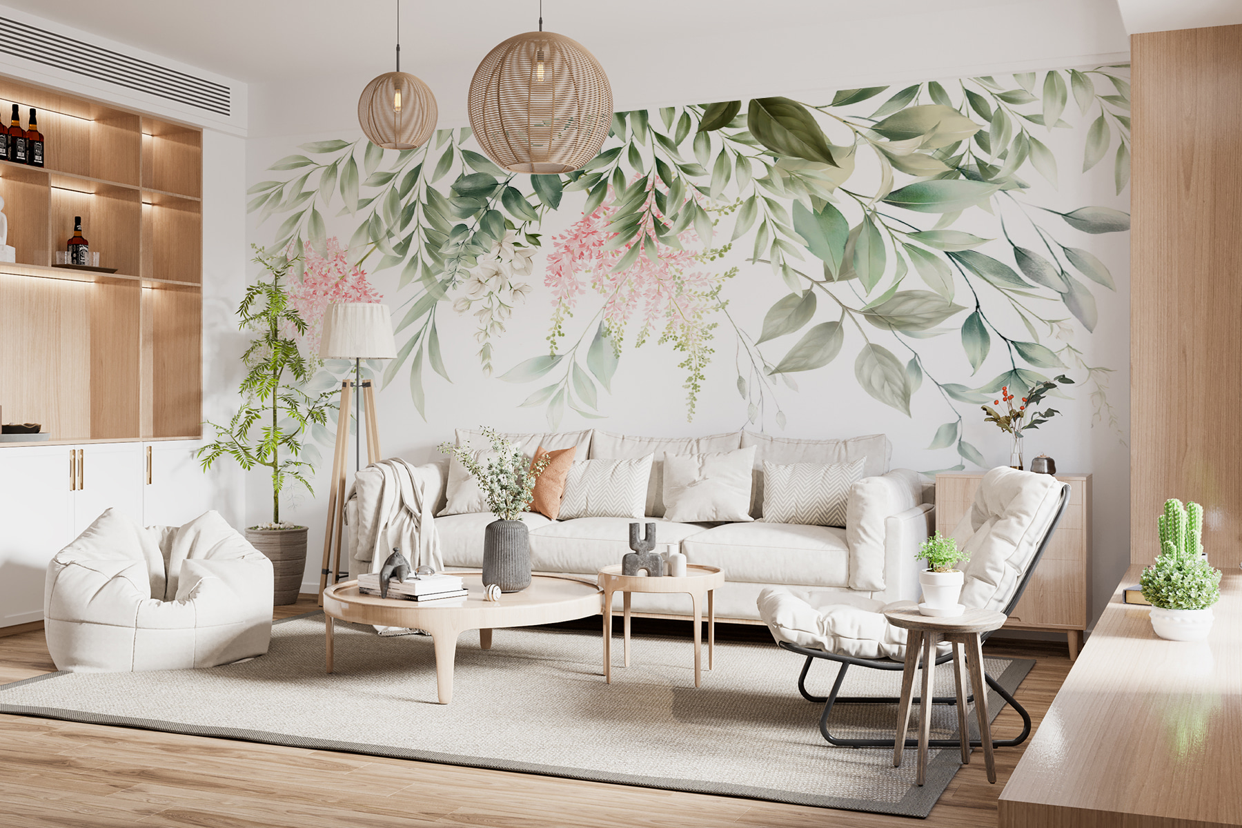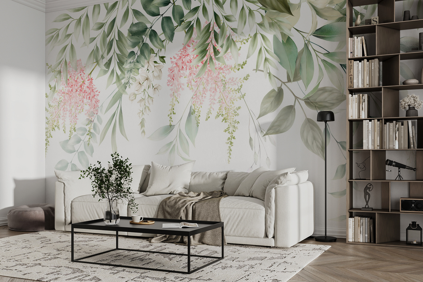 Imaginez que vous entrez dans une pièce et que vous vous sentez instantanément apaisé par cette élégante peinture murale florale. Des teintes roses et vertes douces descendent en cascade le long du mur, comme une douce brise de jardin. C’est le mélange parfait, à la fois moderne et intemporel. Idéal pour un salon, une chambre à coucher ou même un élégant bureau à domicile. Les feuilles et les fleurs délicates vous donneront peut-être l’impression de vous prélasser dans un jardin botanique ensoleillé, même les jours les plus pluvieux. Si vous souhaitez ajouter une touche de magie inspirée par la nature à votre espace, cette peinture murale est peut-être ce qu’il vous faut.