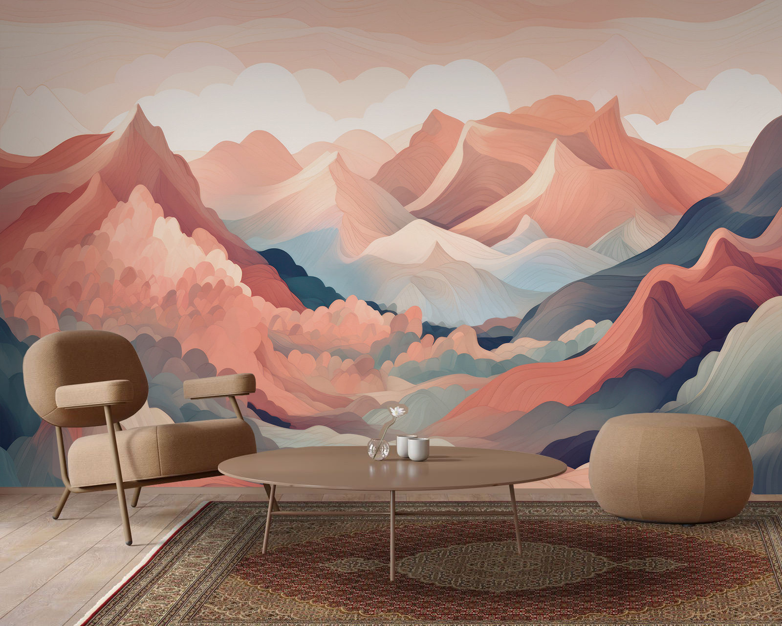 Vos murs ont besoin d’un peu de vie ? Jetez un coup d’œil à cette peinture murale “Paysage de montagne coloré” ! Il ne s’agit pas d’une décoration classique – nous parlons d’une aventure pour vos sens, directement dans votre salon. Imaginez que vous vous prélassiez sur votre canapé en contemplant des pics pastel et des motifs tourbillonnants qui vous invitent pratiquement à la rêverie. C’est comme un mini-voyage dans un pays lointain sans quitter votre maison.