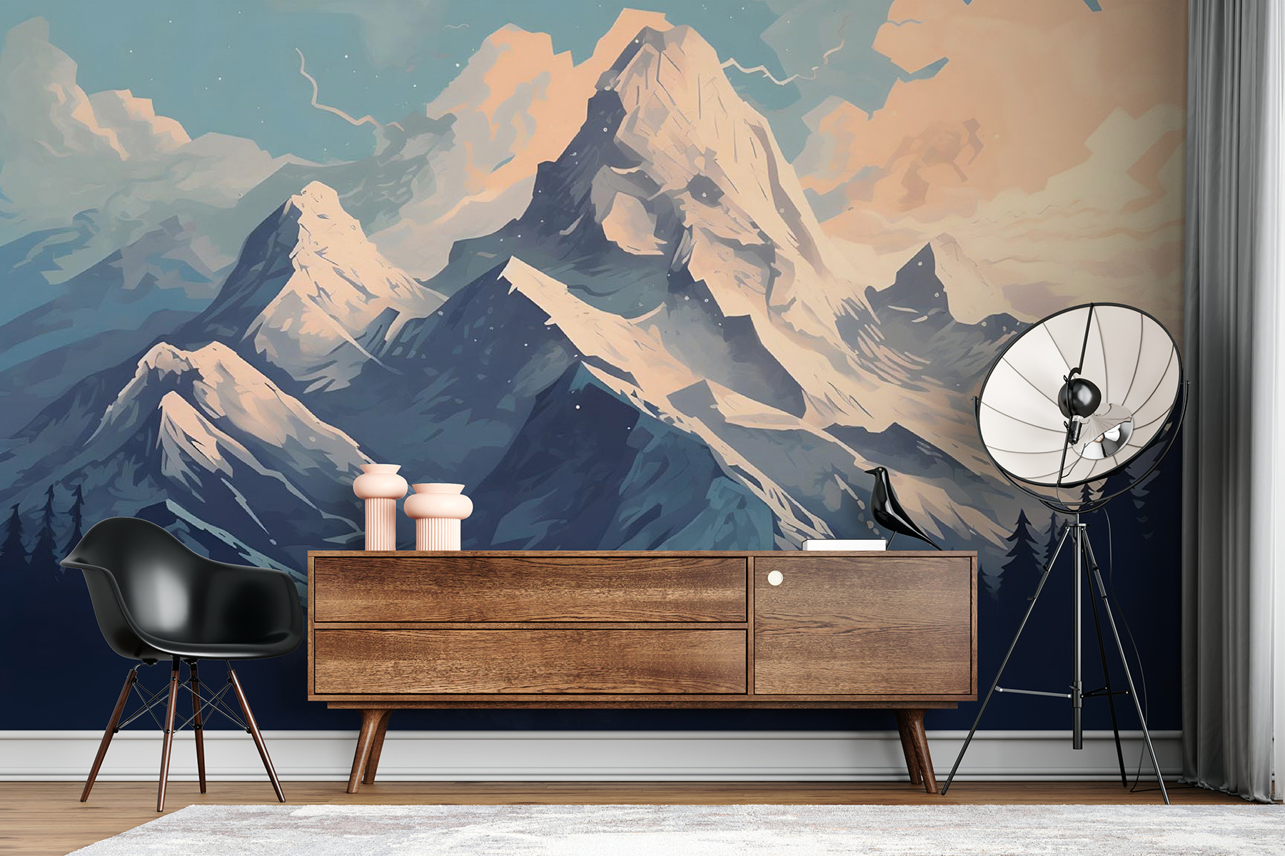 Imaginez que vous entrez dans une cabane confortable, que l’odeur du pin flotte dans l’air, et voilà la peinture murale de montagnes imposantes enveloppées dans des couvertures enneigées et des nuages cotonneux. Cette œuvre n’est pas seulement une toile de fond ; c’est une invitation à rêvasser aux matins alpins et aux aventures qui vous attendent de l’autre côté de la porte. Imaginez-vous en train de siroter un chocolat chaud alors que le monde extérieur est recouvert de blanc et que vous ne voyez que ces pics majestueux. Parfaite pour un salon ou un coin lecture, cette peinture murale fait entrer l’extérieur, donnant à chaque regard l’impression d’une mini escapade. Parfait pour ceux qui ont envie d’une touche de majesté de la nature sans les engelures !