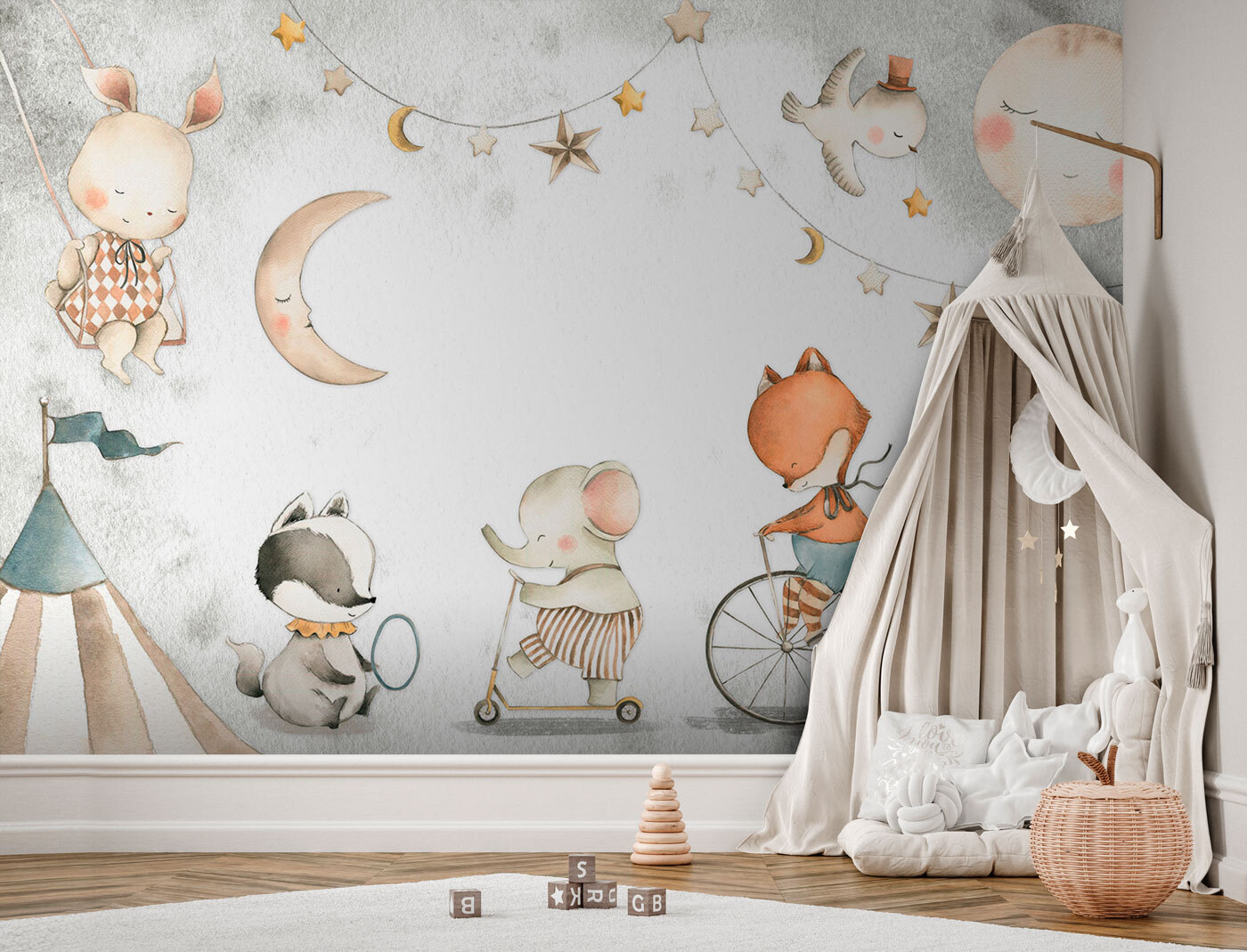 Transformez la chambre de votre enfant en un pays des merveilles fantaisiste avec la peinture murale “Animaux enjoués au carnaval du cirque”. Cette impression enchanteresse vous transporte dans un carnaval douillet et rêveur, où de charmants animaux jouent et s’ébattent sous un ciel étoilé. Parfaite pour ajouter une touche de magie aux chambres ou aux aires de jeu, elle représente un lapin adorable, un renard espiègle et d’autres amis adorables qui s’amusent sur divers manèges de carnaval. Vous adorerez voir le visage de votre enfant s’illuminer lorsqu’il découvrira les scènes délicieuses. Ce n’est pas seulement une décoration murale, c’est une dose quotidienne de joie. Imaginez des histoires à dormir debout sur cette toile de fond : de la magie à l’état pur !