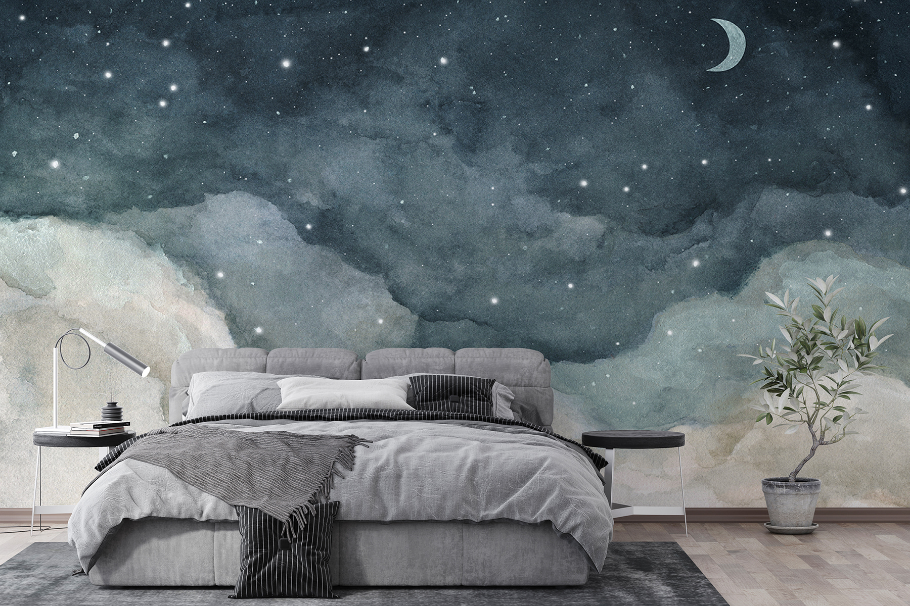 Accrochez cette peinture murale et, soudain, vos murs vous chuchoteront des histoires d’étoiles et de beaux rêves. C’est comme si vous entriez dans une berceuse. Qui ne voudrait pas d’une telle magie paisible dans sa maison ?