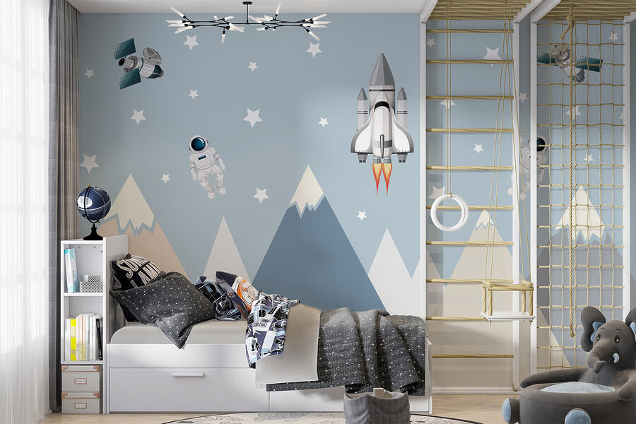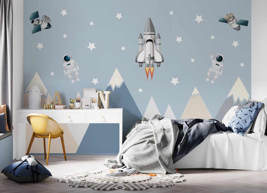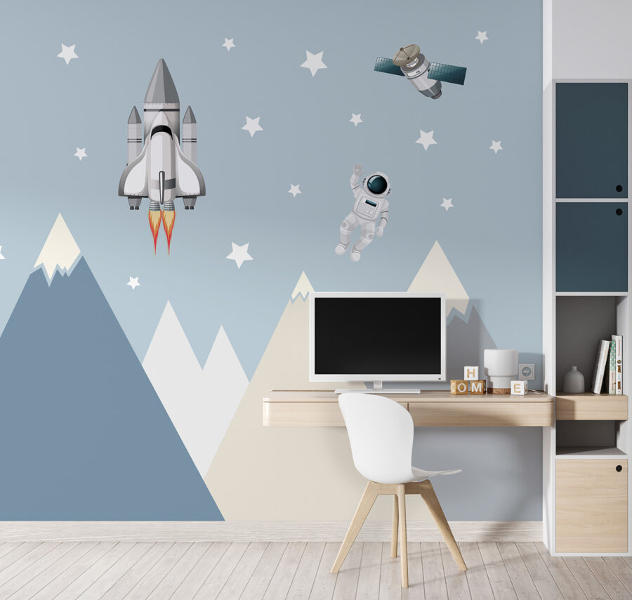 Parfait pour les chambres d’enfants ou les salles de jeux, le design ludique de cette peinture murale ajoute une touche d’émerveillement et de fantaisie. Imaginez : chaque jour, votre enfant s’envole pour des voyages fantastiques, rencontre de courageux astronautes et explore des galaxies lointaines. Il ne s’agit pas seulement d’une peinture murale, mais d’un portail vers des jeux imaginatifs sans fin. Et ces doux pics montagneux ? Ils ajoutent une touche de douceur et de terre à l’ensemble de la scène. Honnêtement, c’est de la pure magie.