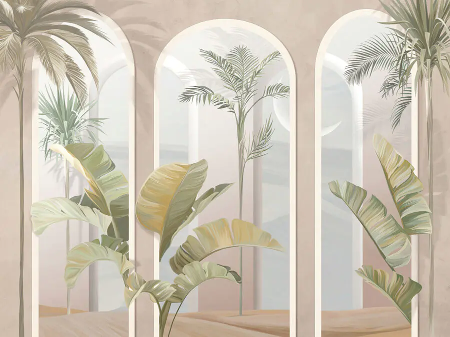 Imaginez que vous pénétrez dans un havre de paix à chaque fois que vous entrez dans votre chambre. La peinture murale “Fenêtres arquées avec plantes tropicales” a réussi à créer cette ambiance à la perfection. C’est comme si vous vous échappiez dans un paradis tropical sans quitter votre maison. Les verts discrets des plantes luxuriantes et feuillues semblent prendre vie à travers les arches élégantes, offrant une touche de détente. De plus, ces arches douces ont cette façon fantastique de donner à votre espace l’impression d’être plus grand – comme si vous jetiez un coup d’œil dans une station balnéaire de rêve !