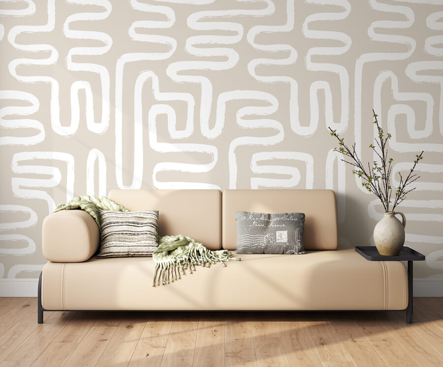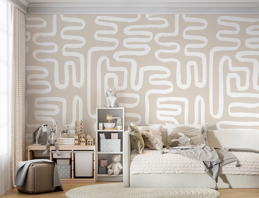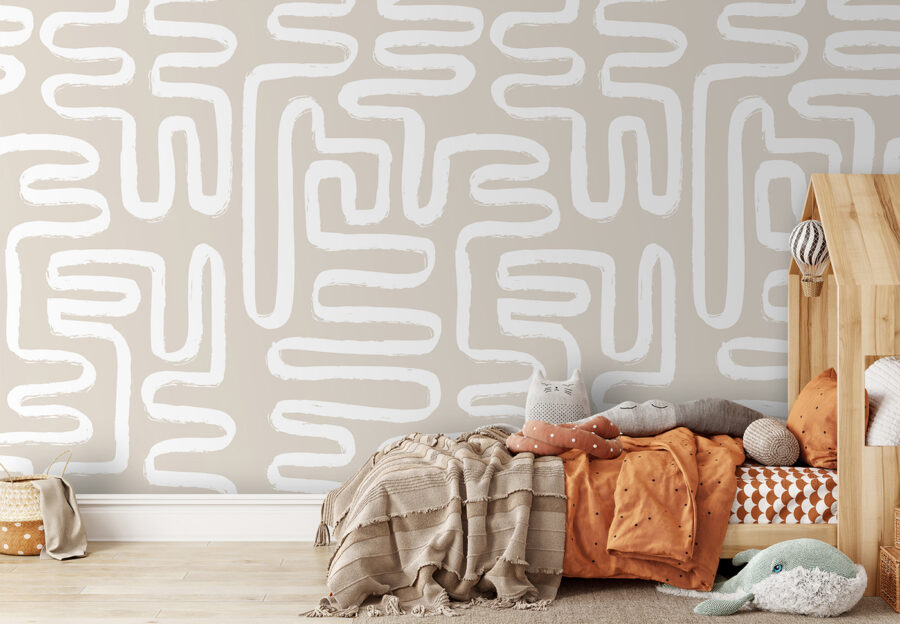 Entrez dans un monde d’élégance ludique avec cette peinture murale, où des lignes blanches abstraites dansent sur un fond beige doux. C’est comme si vous aviez une galerie d’art contemporain dans votre salon – sans le prix du billet ! Imaginez que vous sirotiez votre café du matin en contemplant ces formes fantaisistes, qui parviennent à susciter l’inspiration et à calmer l’esprit en même temps. Les invités seront attirés et les conversations se dérouleront sans difficulté. Chaque regard révèle un nouveau détail, comme une petite chasse au trésor. Parfait pour les salons, les bureaux ou tout autre espace nécessitant une dose supplémentaire de créativité !