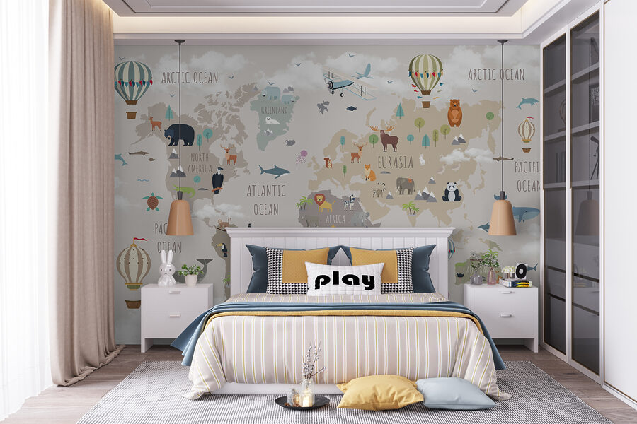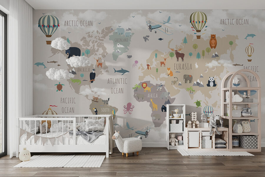 Cette peinture murale n’est pas seulement une décoration, c’est une expérience à part entière. Les enfants peuvent découvrir les différents continents et océans tout en apercevant leurs animaux préférés, des ours polaires du Groenland aux kangourous d’Australie. Les couleurs sourdes sont apaisantes, parfaites pour les histoires à l’heure du coucher ou les dimanches après-midi paresseux. C’est le genre de décor qui stimule l’imagination et la curiosité, ce qui le rend idéal pour les crèches, les salles de jeux ou même les salles de classe. De plus, le fait de repérer chaque jour de nouveaux détails entretient la magie.
