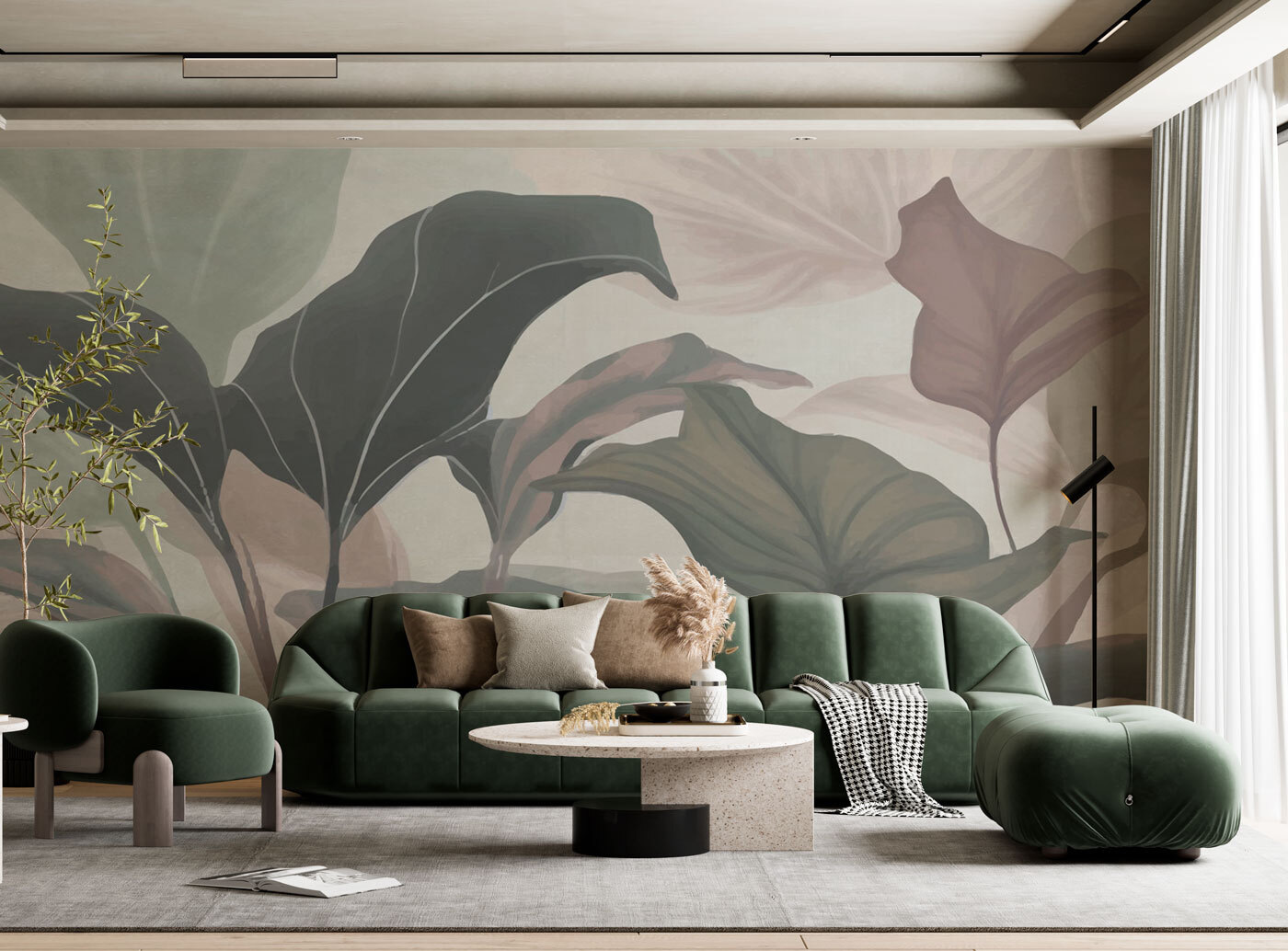 Vous envisagez de donner un coup de jeune à votre espace ? Jetez un coup d’œil à cette peinture murale “Feuilles abstraites dans des tons pastel”. C’est comme si vous faisiez entrer dans votre salon l’ambiance calme et détendue d’un dimanche matin. Ces feuilles douces et pastel ne crient pas pour attirer l’attention, elles la chuchotent.