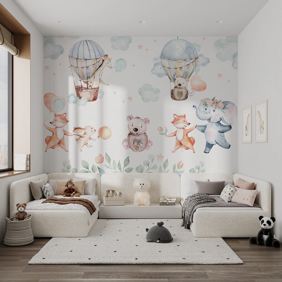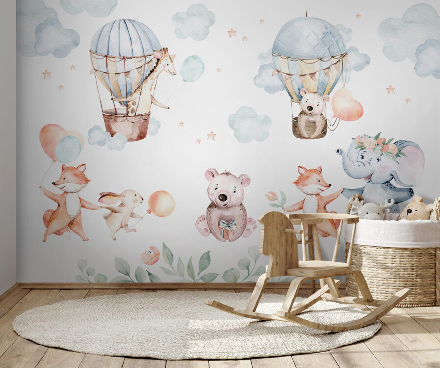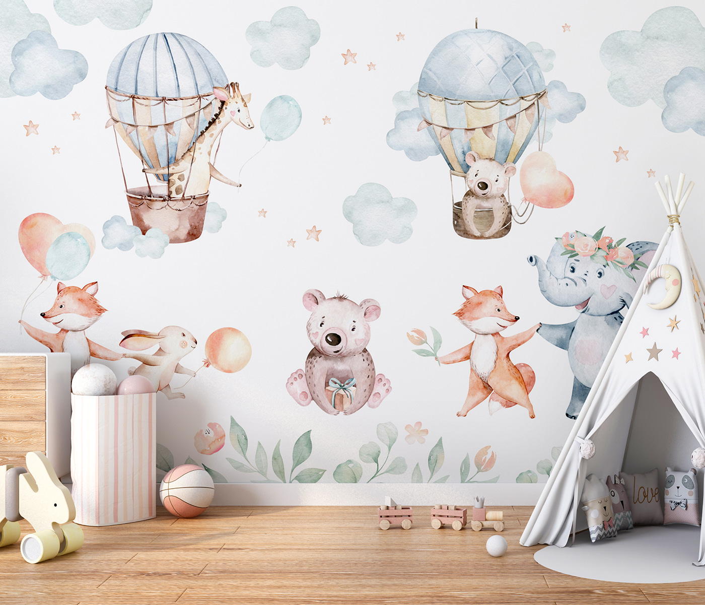 Imaginez le plaisir absolu d’entrer dans une pièce et d’être accueilli par une girafe fantaisiste flottant dans une montgolfière ! Parfaite pour les chambres d’enfants, cette peinture murale “Girafe en montgolfière” apporte une touche magique à n’importe quel espace. Charmant, n’est-ce pas ? C’est comme si l’on plongeait directement dans une aventure de conte de rêve où l’imagination n’a pas de limites. Ajoutez à cela les nuages cotonneux et les animaux souriants, et vous aurez l’impression que le mur vous fait un câlin chaleureux.