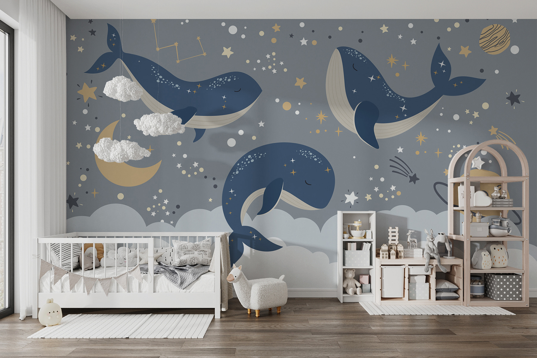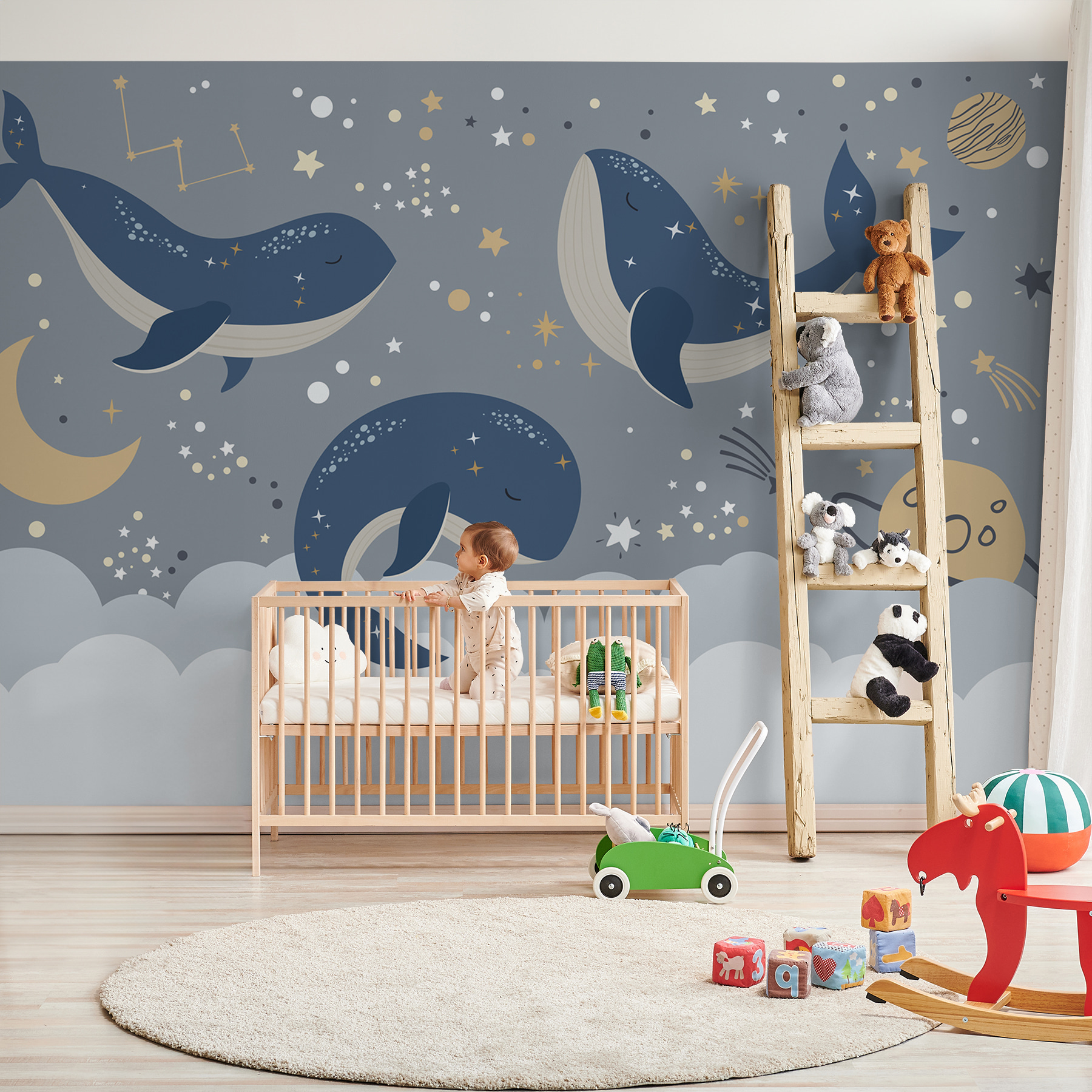 Vous souhaitez ajouter une touche d’émerveillement à la chambre de votre enfant ? Jetez un coup d’œil à cette merveilleuse “peinture murale baleine bleue avec queue blanche et étoiles”. Imaginez ce tableau sur le mur de votre enfant – c’est comme s’il avait son propre morceau de ciel nocturne, avec des baleines bleues câlines flottant doucement dans une mer d’étoiles et de constellations. Parfait pour les chambres d’enfants ou l’espace de tout petit aventurier, il apporte la bonne touche de magie et de sérénité. De plus, ces baleines endormies semblent promettre de beaux rêves à tous ceux qui s’assoupissent sous elles. C’est une œuvre fantaisiste, apaisante et un peu ludique, une toile de fond délicieuse pour les histoires à l’heure du coucher et les siestes de l’après-midi. Que ce soit pour votre fils, votre fille ou pour les moments de câlins avec votre bébé, il transforme n’importe quel mur en une aventure apaisante et étoilée.