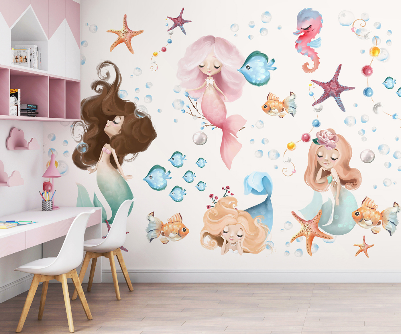 Imaginez ceci : une délicieuse peinture murale débordant d’un charme fantaisiste. Une petite fille de dessin animé aux longs cheveux bruns flotte paisiblement dans un monde sous-marin de rêve. De douces teintes pastel et des amis marins enjoués – poissons joyeux et étoiles de mer gracieuses – tourbillonnent dans une danse magique. Qu’il s’agisse de la chambre de votre enfant ou d’un espace qui a besoin d’une touche de gaieté, cette peinture murale transforme des murs ordinaires en une scène de livre d’histoires enchanteresse. C’est comme si vous apportiez un peu de pays fantastique directement sur le pas de votre porte – il suffit de regarder ces petits yeux s’illuminer ! 🌊✨