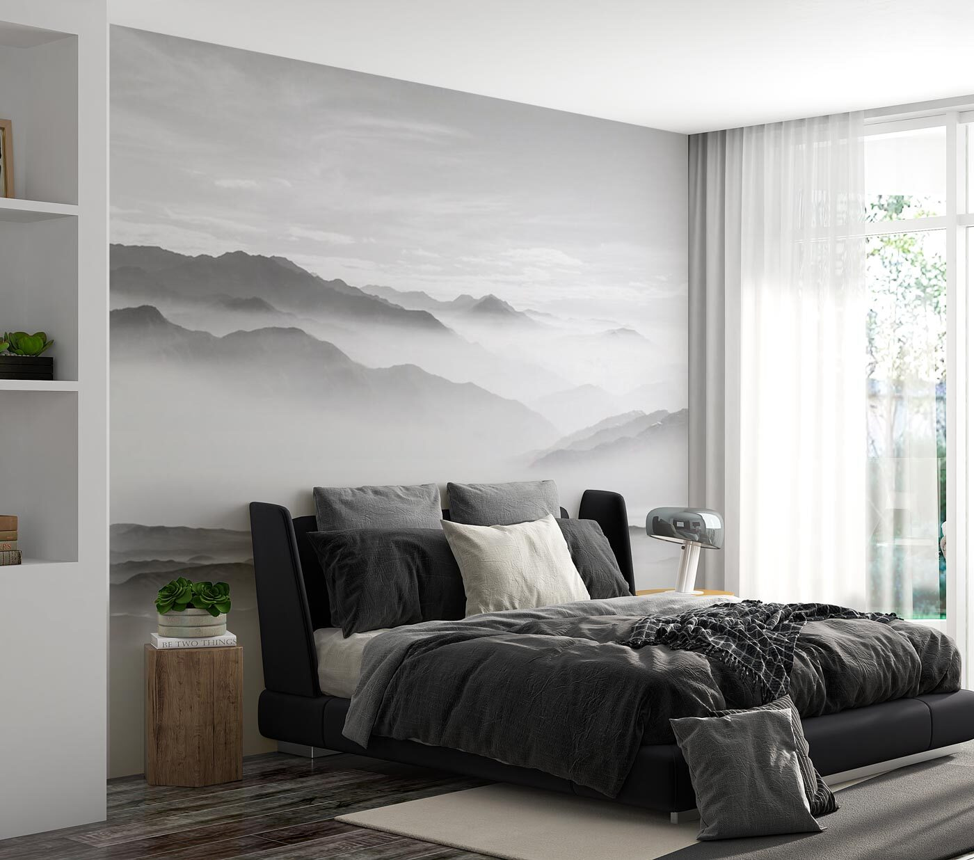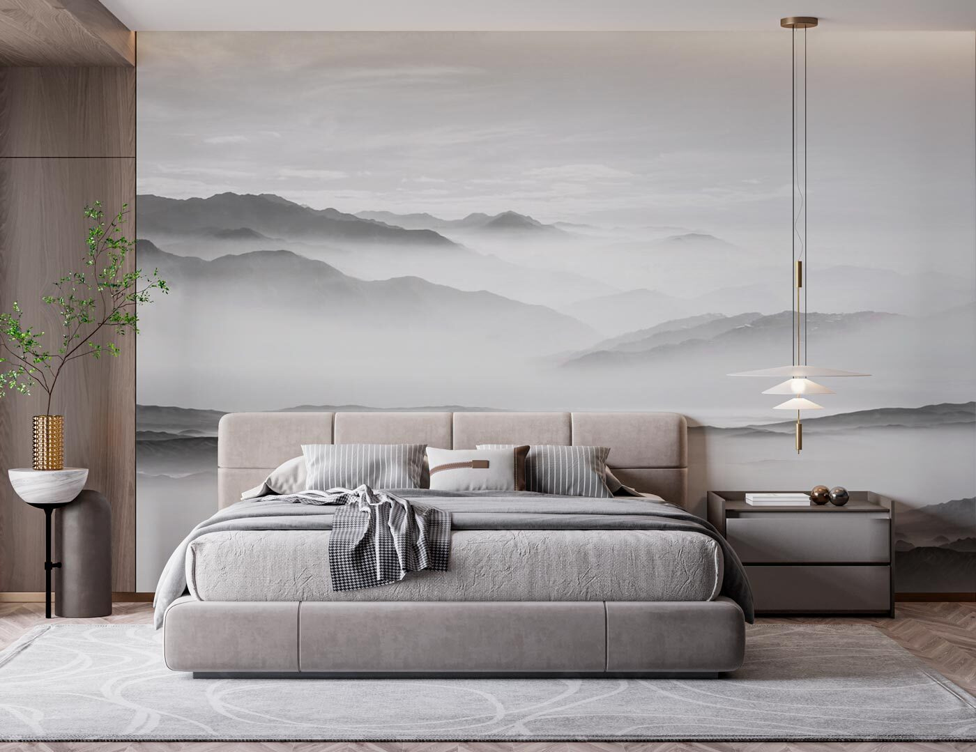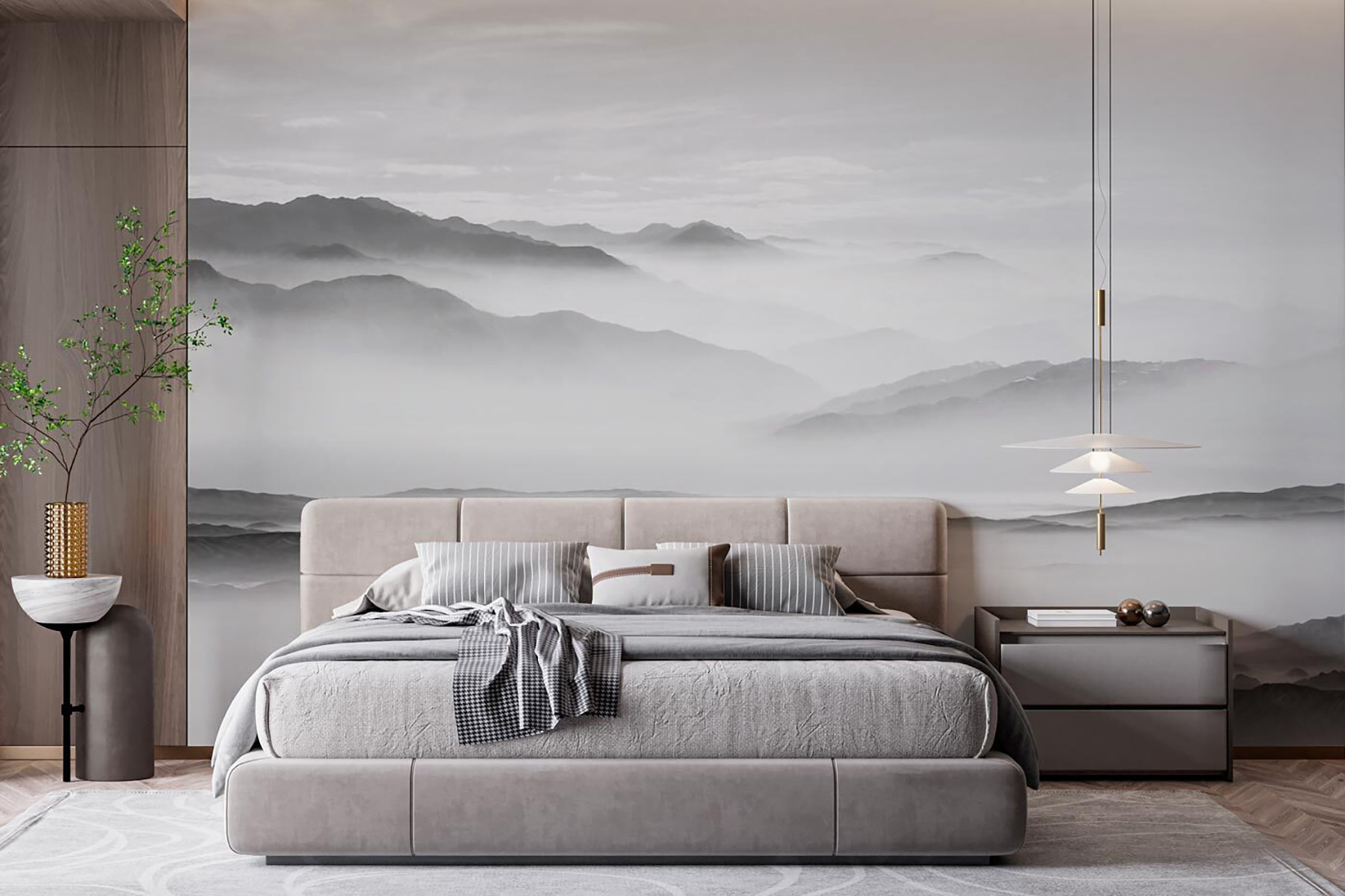 Les tons gris subtils créent une atmosphère apaisante, vous invitant presque à siroter une tasse de thé chaude tout en rêvassant par la fenêtre. Un instant, vous êtes au cœur de l’agitation de la ville, et l’instant d’après, vous êtes perdu dans la brume paisible de la montagne. C’est un excellent moyen d’engager la conversation, et qui ne voudrait pas partager son mur avec un peu de la magie de la nature ? Cette peinture murale n’est pas qu’une question de décor ; il s’agit de créer un espace qui ressemble à une bouffée d’air frais.