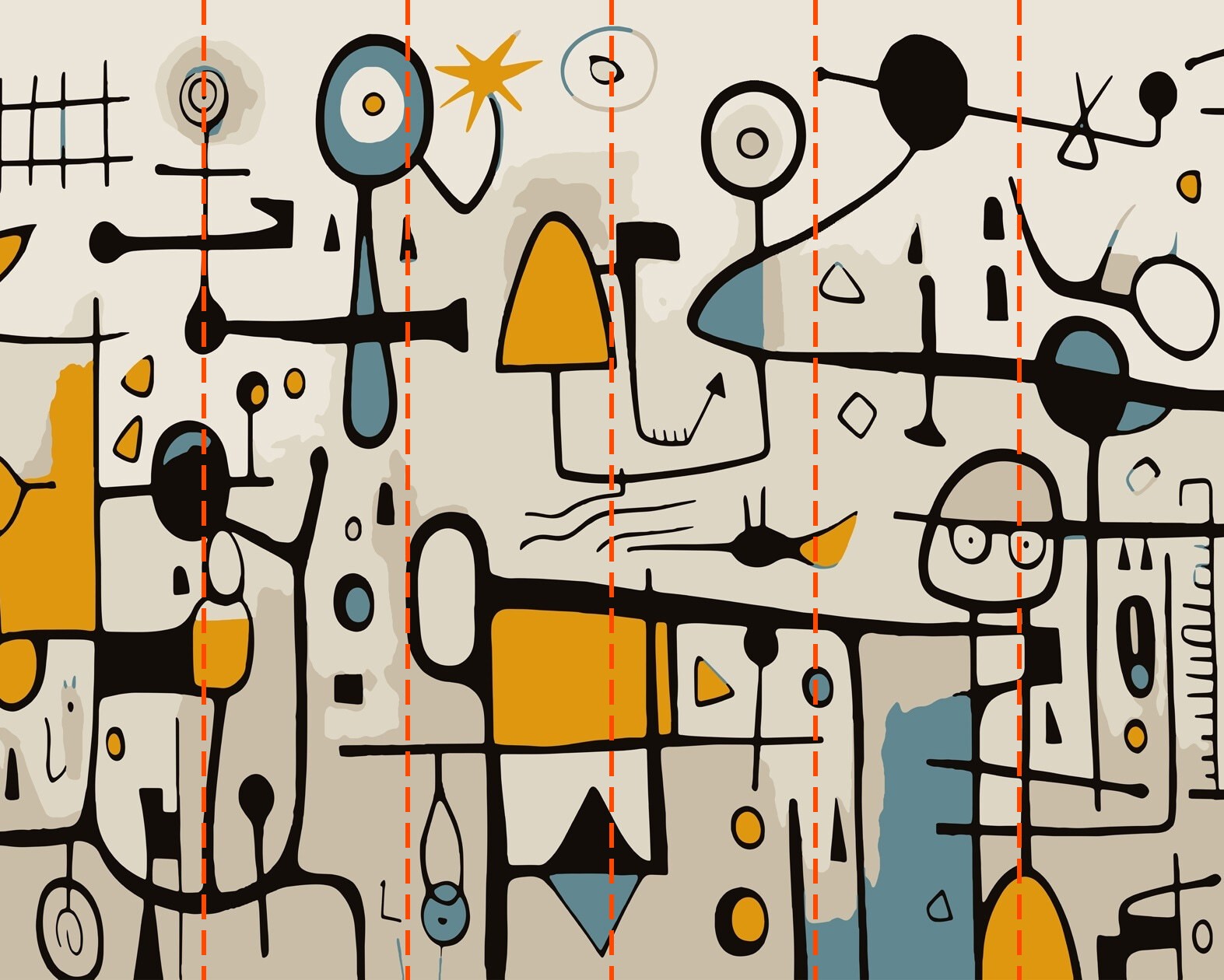 Votre papier peint sera préparé selon les dimensions que vous avez indiquées lors du processus de commande. La toile sera divisée en sections pratiques, chacune d’une largeur maximale de 50 cm.