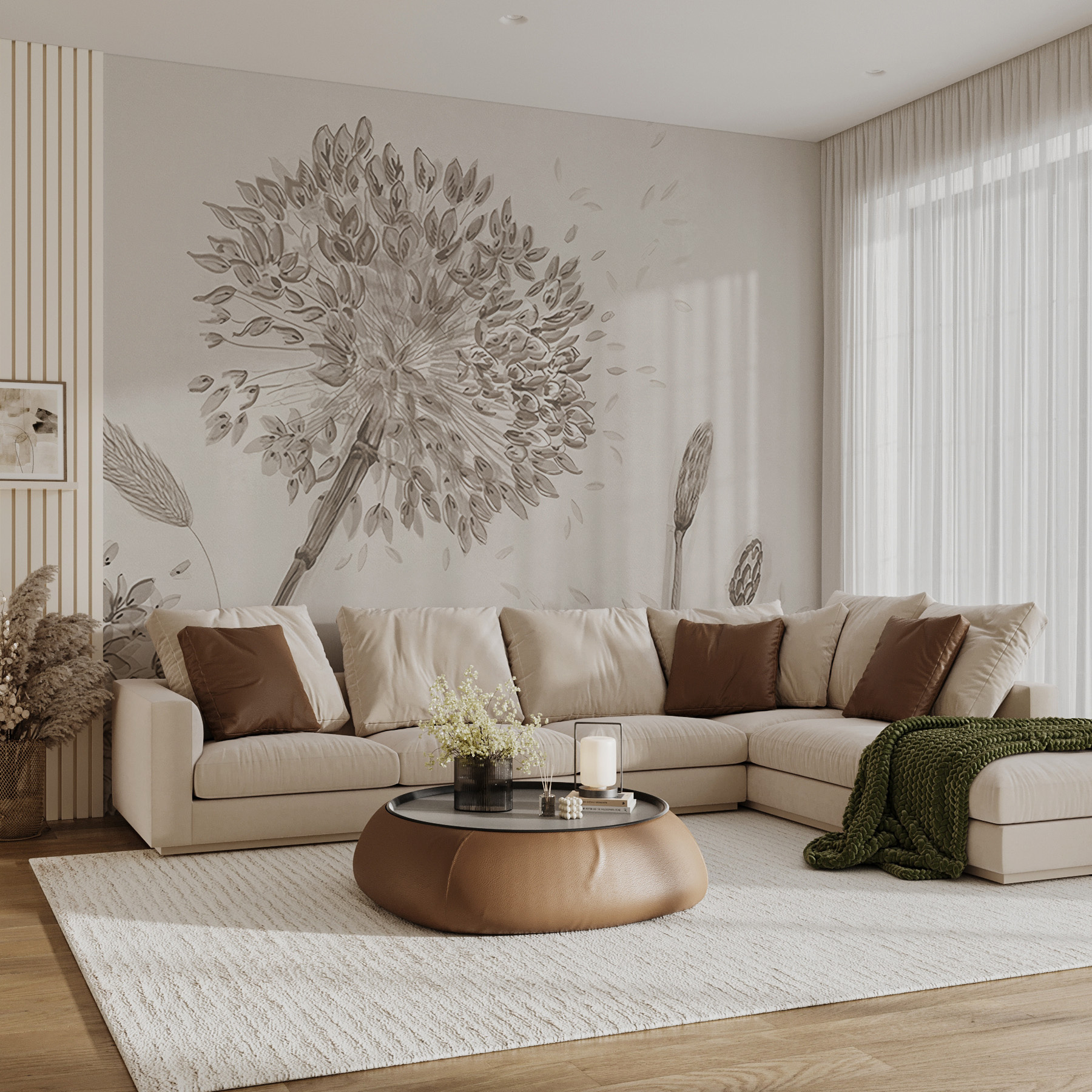 Jetez un coup d’œil à cette peinture murale de rêve qui représente le dessin délicat d’une plante. Elle a l’air d’un pissenlit, d’une fleur sauvage, et ajoute un soupçon de nature à votre espace sans être trop visible. Parfait pour quelqu’un qui veut faire entrer l’extérieur, sans les insectes et la saleté. Imaginez que vous vous réveillez avec cette toile de fond qui se balance doucement – on dirait une promenade matinale dans un pré, n’est-ce pas ? Vaporisez un peu de lavande et vous y êtes presque. C’est le genre de papier peint qui donne à vos murs un aspect intéressant et vivant, sans être trop chargé. Il est parfait pour créer un endroit serein dans votre salon, votre chambre à coucher ou même dans un coin lecture confortable. Il s’agit sans aucun doute d’un sujet de conversation et d’un petit coin de tranquillité.