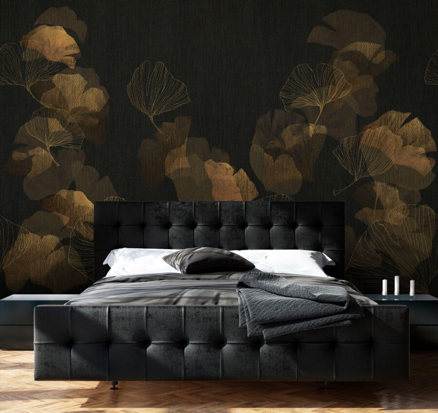 Transformez votre espace avec cette superbe peinture murale représentant des feuilles délicates sur un fond sombre. Imaginez que vous entrez dans une pièce où la nature rencontre l’élégance, vous enveloppant d’une étreinte douillette. Il ajoute une touche chic sans effort, donnant vie aux murs sans pour autant submerger les sens.