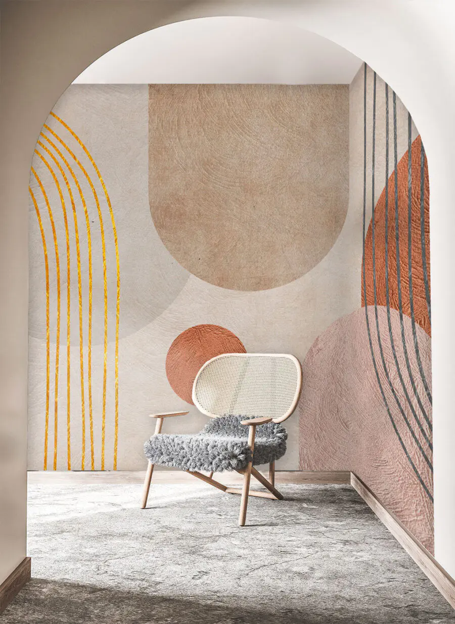 Transformez votre espace avec cette superbe peinture murale géométrique abstraite, où les tons de terre dansent ensemble comme de vieux amis lors d’une réunion. Imaginez que vous entrez dans une pièce qui murmure chaleur et créativité, vous invitant à faire une pause et à réfléchir. Les courbes et les lignes douces créent un rythme apaisant, parfait pour les nuits douillettes ou les matins inspirants. Cette peinture murale ajoute une touche d’élégance artistique, s’harmonisant avec le mobilier et la décoration, tout en suscitant juste ce qu’il faut de curiosité. Ce n’est pas seulement un mur, c’est une expérience. Qui ne voudrait pas passer du temps avec ça ?