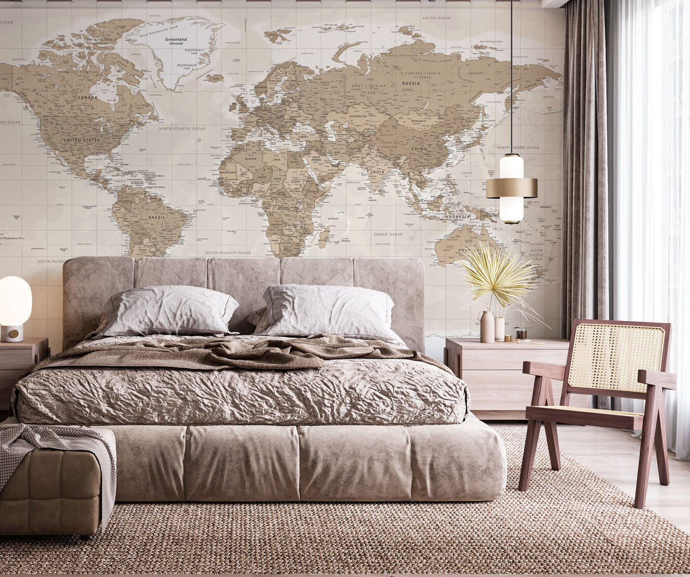 Vous avez un endroit sur votre mur qui a besoin d’un peu d’éclat ? Jetez un coup d’œil à cette peinture murale “Carte du monde” de notre collection Contemporaine. Elle n’est pas réservée aux amateurs de géographie – imaginez des vacances mentales quotidiennes rien qu’en jetant un coup d’œil en l’air. Les tons terreux lui confèrent une ambiance chaleureuse et accueillante qui s’adapte à n’importe quel endroit, du salon à un coin bureau confortable. De plus, il permet d’engager la conversation. Des amis passent par là et soudain, vous échangez des récits de voyage ou rêvez de nouvelles aventures ensemble. Pensez-y : un instant, vous fixez un mur vide, et l’instant d’après, vous tracez des rêves. Pas mal, hein ?
