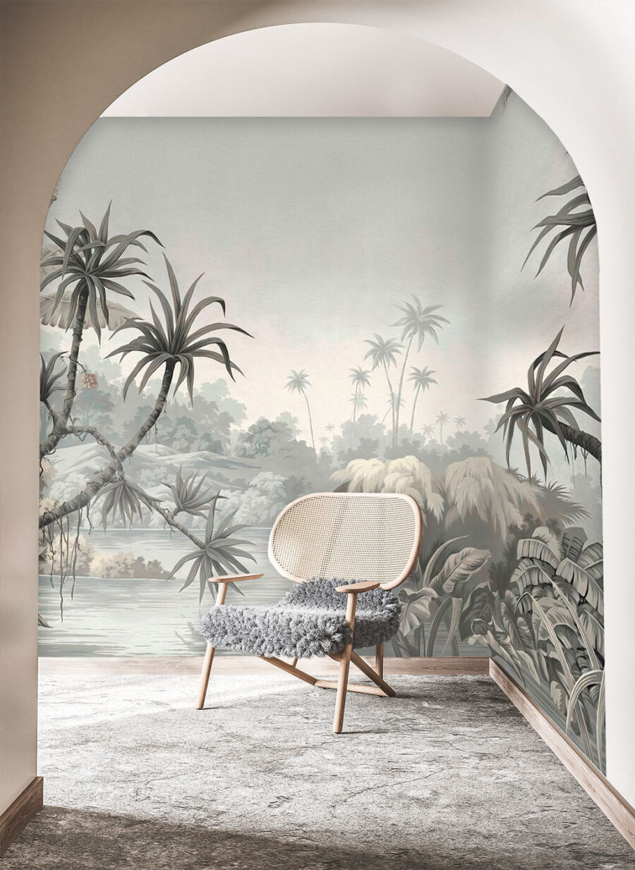 Imaginez que vous vous prélassiez dans votre salon et qu’au lieu de regarder des murs vides, vous soyez transporté dans cette oasis tropicale sereine, juste à côté de chez vous. Cette peinture murale “Paysage tropical en tons sourds” est comme une bouffée d’air frais avec une touche de mystère de la jungle. Il n’est pas trop bruyant, mais il capture toujours cette ambiance luxuriante et verte de feuillage dense et d’arbres exotiques.