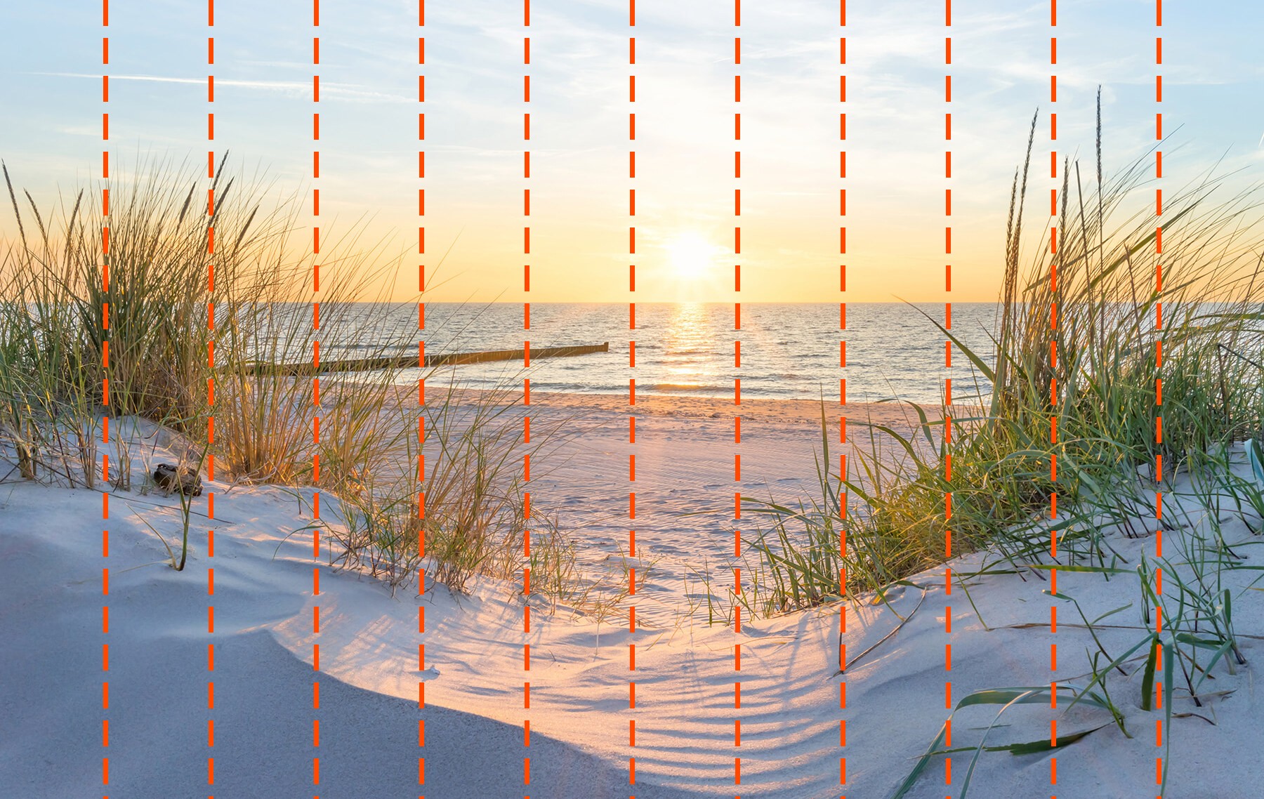 Votre papier peint sera préparé selon les dimensions que vous avez indiquées lors du processus de commande. La toile sera divisée en sections pratiques, chacune d’une largeur maximale de 50 cm.