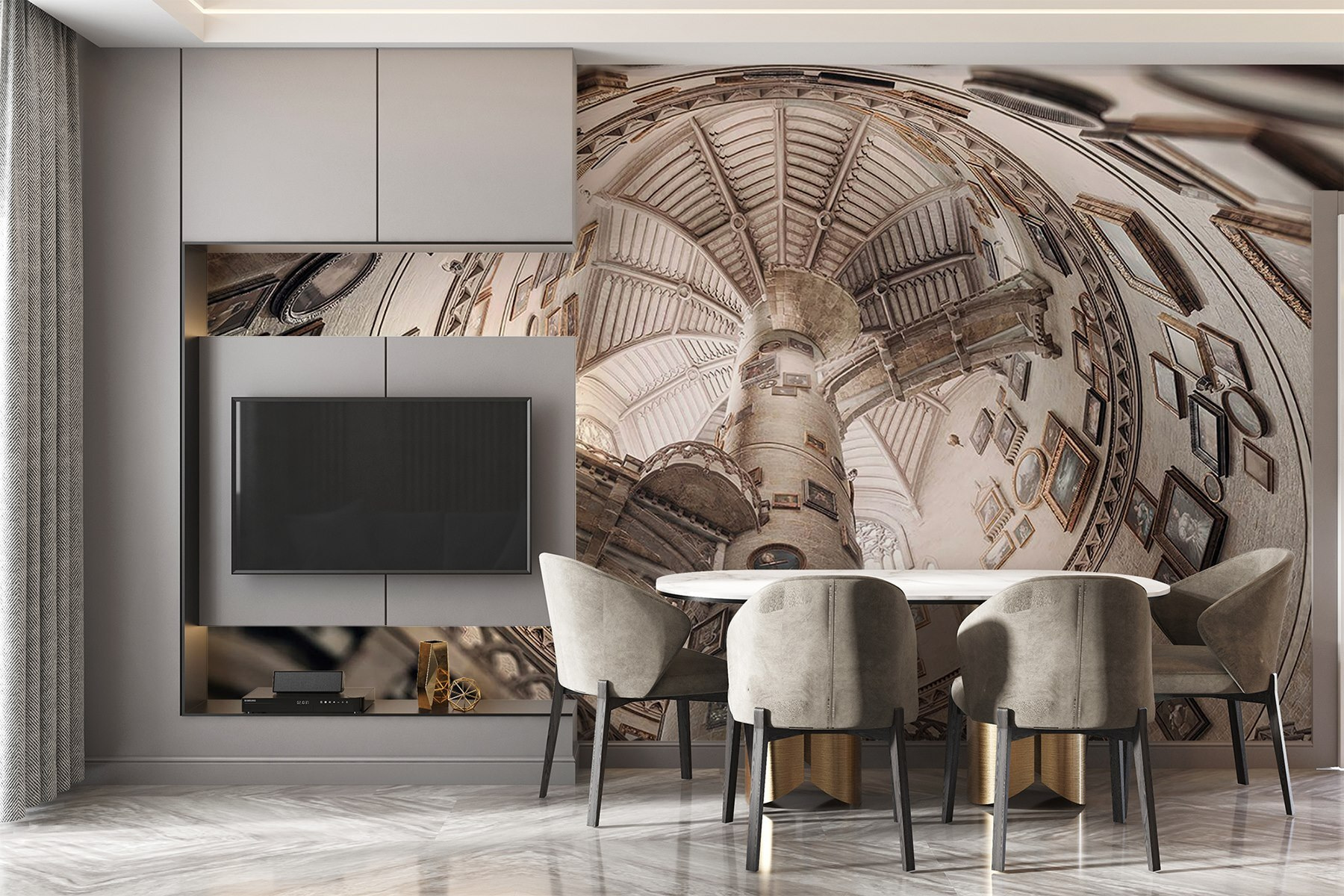 Entrez dans un monde fantaisiste avec la peinture murale “Bâtiment circulaire à escaliers multiples”. Imaginez que vous regardez vers le haut et que vous vous perdez dans la spirale enchanteresse, où chaque escalier mène à de nouvelles découvertes. Le charme des portraits d’époque qui ornent les murs ajoute une touche d’excentricité et donne l’impression d’un voyage dans le temps. Imaginez-vous en train de siroter un thé avec des amis, tout en étant entouré de cette superbe toile de fond – les discussions dérivent de l’art à cette vidéo de chat bizarre de la semaine dernière ! Cette peinture murale n’est pas seulement un décor ; c’est une invitation à libérer son imagination et à créer ses propres histoires. Parfaite pour donner du caractère à n’importe quelle pièce, elle fera de vos murs la star du spectacle !
