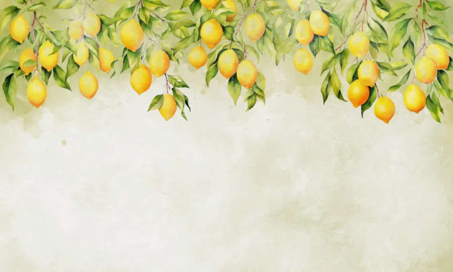 Papier peint Branches de citronnier avec fruits. (UGS: u97595)