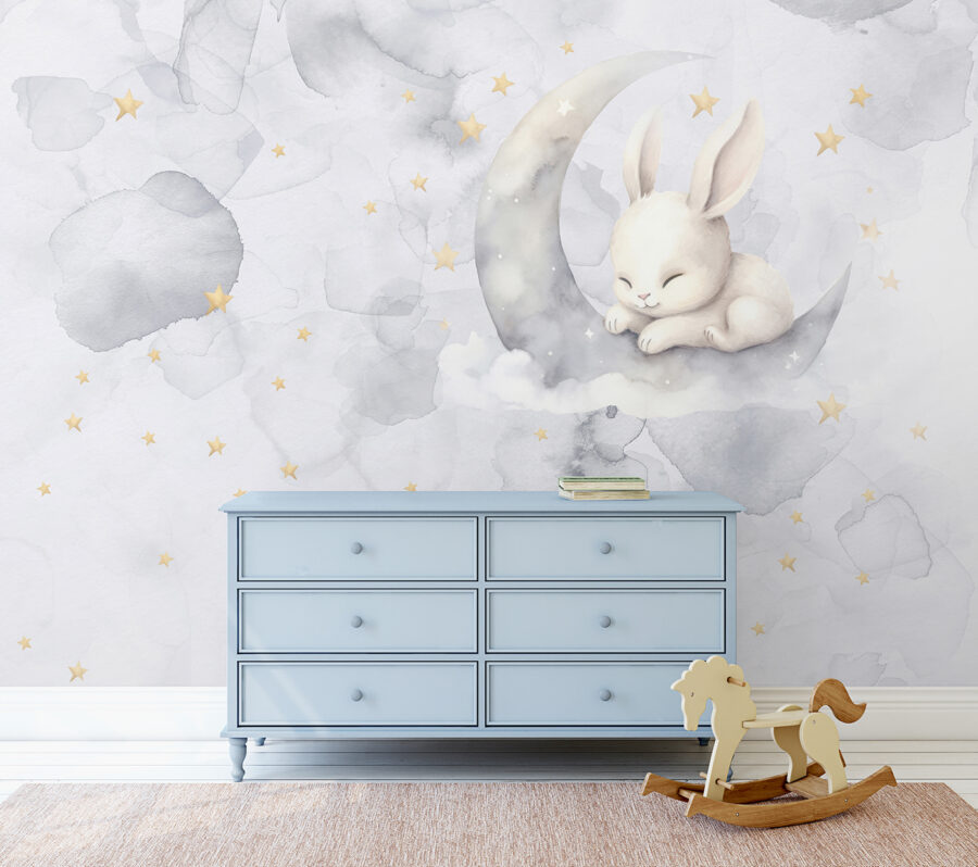 Papier peint Peinture d'un lapin sur une balançoire