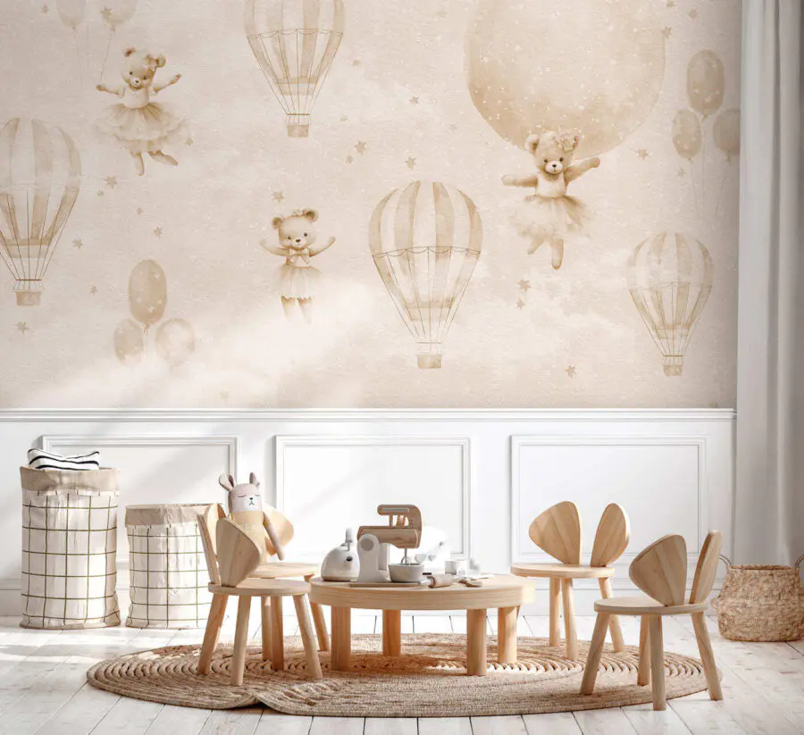 Transformez n’importe quel espace en un pays des merveilles fantaisiste avec la peinture murale “Teddy Bear in a Tutu”. Imaginez : des ours en peluche virevoltant dans leur tenue de ballerine, flottant au milieu de charmantes montgolfières. C’est comme un pays de rêve où l’imagination n’a pas de limites. Parfait pour les chambres d’enfants ou les aires de jeux, il ajoute une touche de magie et d’aventure. Imaginez les sourires et les rires des petits qui montrent leurs amis en peluche en train de danser. Cette peinture murale inspire la joie et la créativité, rendant chaque jour un peu plus lumineux. Alors pourquoi ne pas laisser vos murs raconter une histoire ?