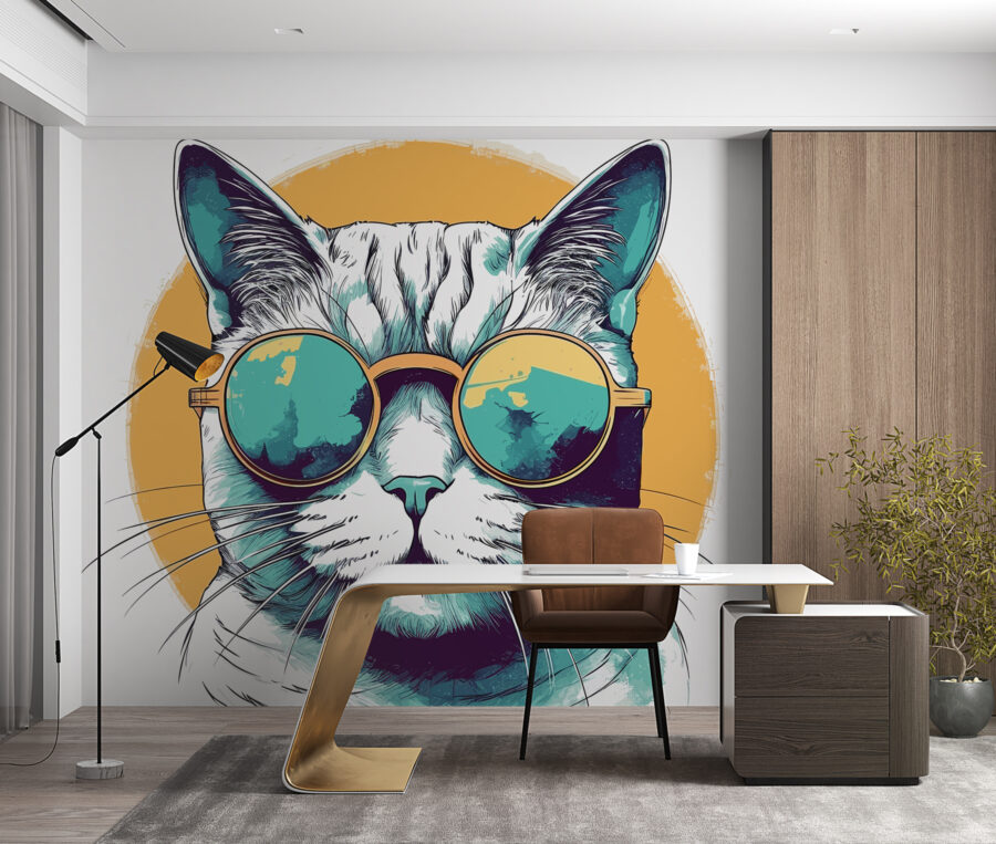 Préparez-vous à rencontrer le chat le plus cool de la ville ! Cette peinture murale représente un félin élégant portant des lunettes de soleil légèrement surdimensionnées, parfaites pour apporter une touche de fantaisie et de personnalité à n’importe quelle pièce. Imaginez que vous entrez dans votre espace et que vous êtes accueilli par ce charmant chat – c’est comme si vous aviez un petit ami qui vous rappelle de prendre la vie un peu moins au sérieux. Idéale pour les chambres d’enfants ou pour tous ceux qui aiment les décors uniques, cette peinture murale ajoute une touche d’amusement et de couleur. C’est le genre d’œuvre qui suscite des conversations et des sourires – qui ne voudrait pas de ce genre d’ambiance ? Parfaite pour apporter une touche ludique à un salon, ou pour agrémenter une salle de jeux, elle pourrait bien inspirer des histoires et des rires vraiment loufoques.