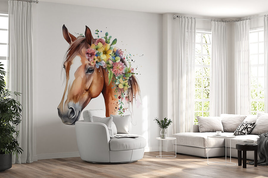 1 avis pour Papier peint Cheval orné de fleurs éclatantes