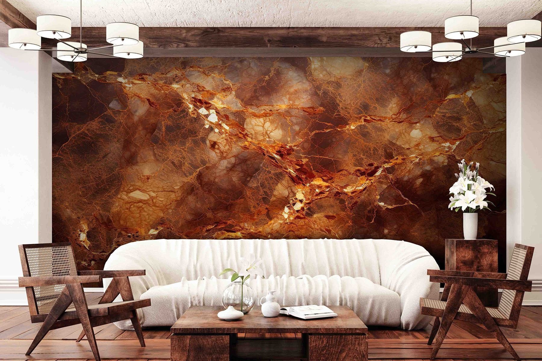 Transformez votre espace avec cette superbe peinture murale aux motifs complexes et aux teintes chaudes. Imaginez que vous entrez dans une pièce qui se sent instantanément plus confortable et plus accueillante. Les couleurs riches vous enveloppent comme une couverture douce, créant une atmosphère sereine. C’est l’idéal pour ce mur qui se sent un peu trop seul. Vos amis ne manqueront pas de faire des commentaires sur sa beauté, voire d’essayer de déchiffrer les motifs en sirotant un thé. Cette peinture murale n’est pas seulement une décoration ; c’est une expérience, qui invite la chaleur et une touche de drame dans la vie de tous les jours. Qui aurait cru que les murs pouvaient avoir autant de personnalité ? Parfait pour toutes les pièces qui ont besoin d’une touche d’élégance !
