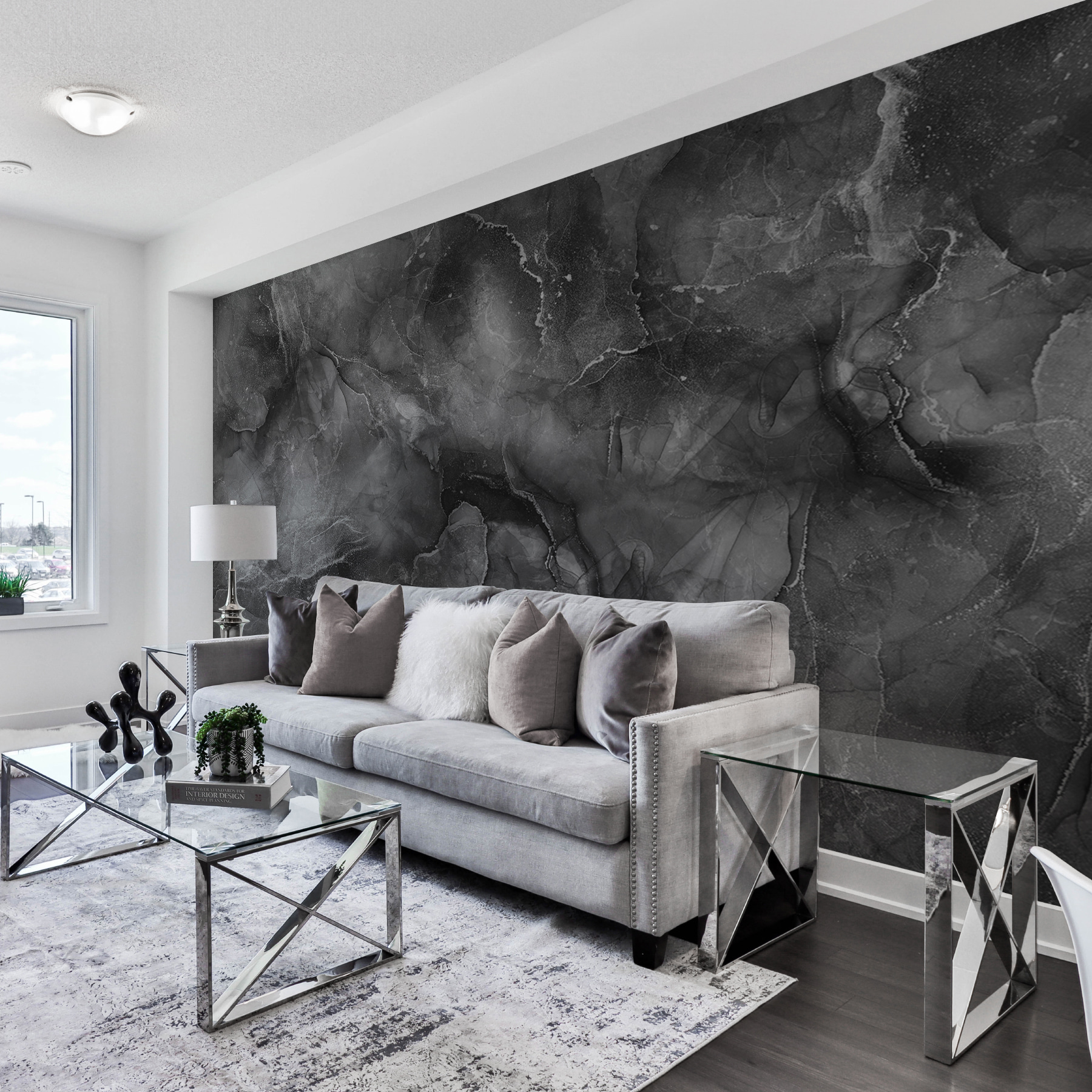 Transformez n’importe quel espace en un lieu d’évasion confortable grâce à cette peinture murale présentant une texture de marbre étonnante et des motifs abstraits. Imaginez que vous entrez dans une pièce qui respire la sophistication sans avoir besoin d’une invitation à un dîner chic. Les tourbillons dansent dans des gris et des noirs riches, ce qui permet de les associer à n’importe quelle combinaison de couleurs, qu’il s’agisse de couleurs vives ou de tons plus discrets.