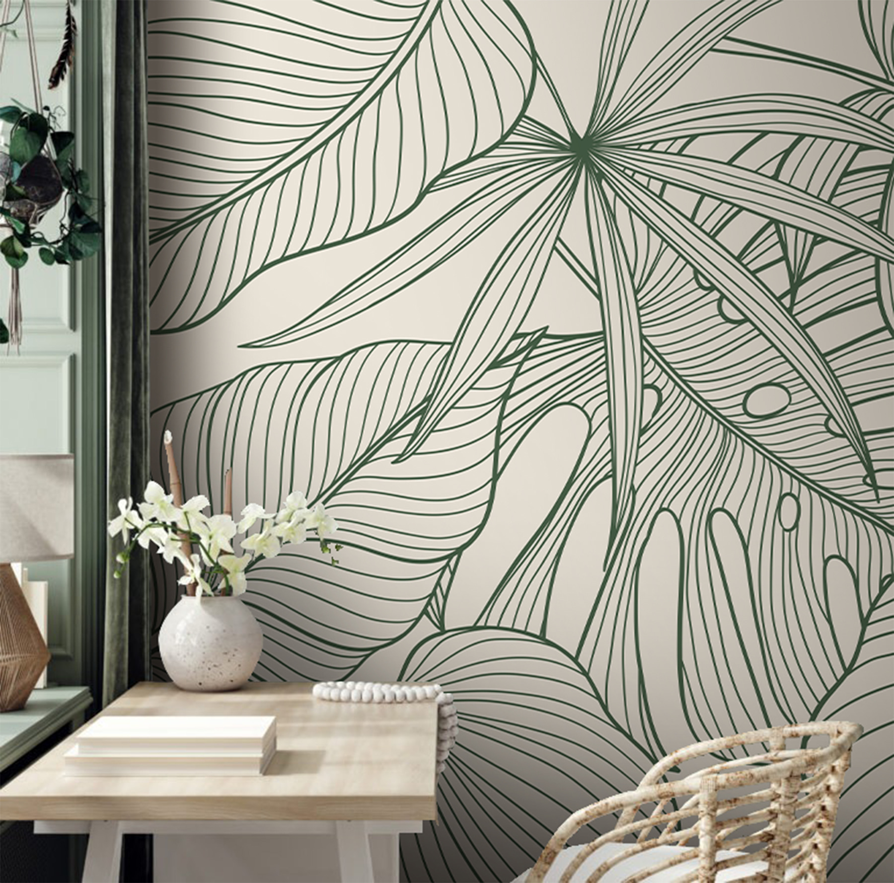 Améliorez votre espace de vie avec la peinture murale “Feuilles vertes avec motifs de lignes complexes”. Cette magnifique pièce mélange des lignes artistiques et des motifs de feuilles luxuriants, parfaits pour ajouter une touche de nature. Imaginez que vous entrez dans votre chambre et que vous avez l’impression d’avoir pénétré dans un sanctuaire tropical chic. C’est comme si vous aviez une part de la magie de la jungle sans l’humidité ! Que vous soyez un amoureux de la nature ou que vous aimiez simplement une décoration unique et accrocheuse, cette peinture murale changera la donne. De plus, elle se décolle et se colle, ce qui signifie qu’il n’y a pas de problème d’installation – vos murs ne seront plus négligés !