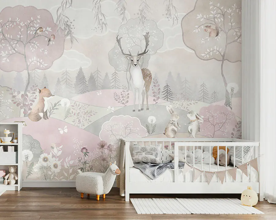 Imaginez que vous pénétrez dans une forêt fantaisiste où un cerf majestueux se tient gracieusement parmi des lapins enjoués et des petits renards curieux. Cette peinture murale n’est pas seulement un élément de décoration, c’est une porte d’entrée vers une charmante scène de conte de fées. Les douces couleurs pastel créent une toile de fond sereine qui invite au calme et à la joie dans n’importe quel espace. Parfait pour une chambre d’enfant ou tout autre recoin nécessitant une touche de magie, il ne manquera pas de susciter conversations et sourires. Imaginez les aventures de l’heure du conte se déroulant sous le regard attentif de ces créatures, rappelant à tous que même les moments les plus simples peuvent être un pur enchantement. Transformez vos murs en une toile d’imagination !
