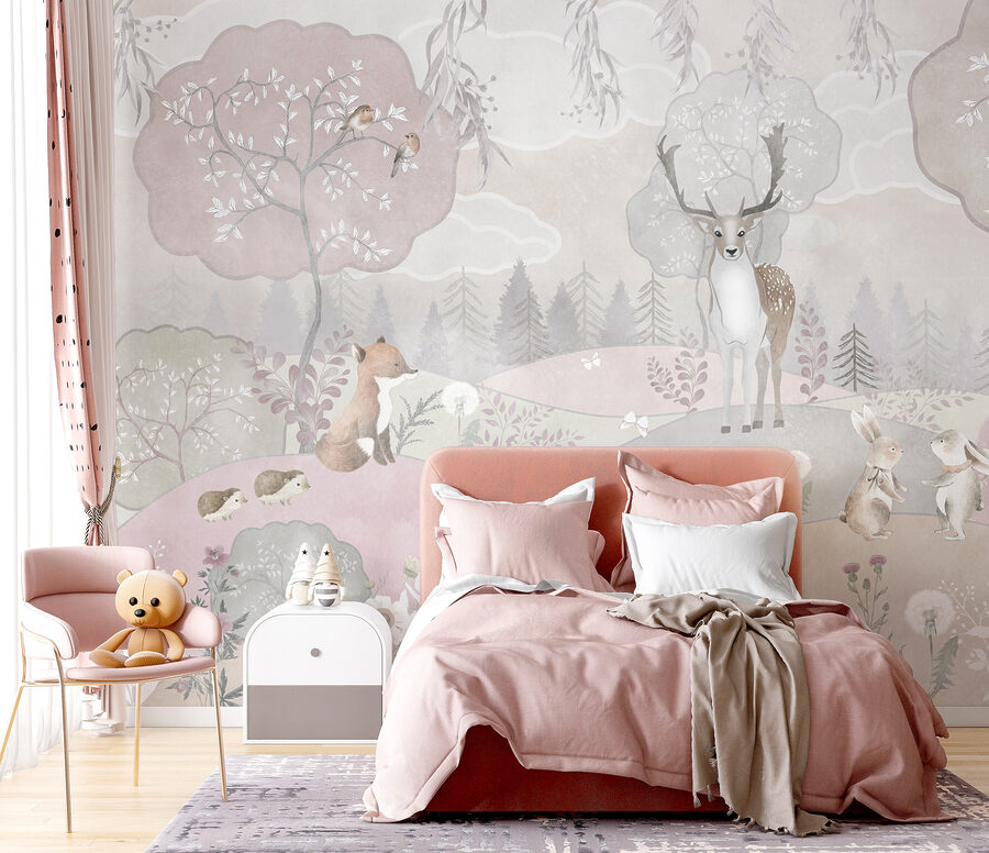 Imaginez que vous pénétrez dans une forêt fantaisiste où un cerf majestueux se tient gracieusement parmi des lapins enjoués et des petits renards curieux. Cette peinture murale n’est pas seulement un élément de décoration, c’est une porte d’entrée vers une charmante scène de conte de fées. Les douces couleurs pastel créent une toile de fond sereine qui invite au calme et à la joie dans n’importe quel espace. Parfait pour une chambre d’enfant ou tout autre recoin nécessitant une touche de magie, il ne manquera pas de susciter conversations et sourires. Imaginez les aventures de l’heure du conte se déroulant sous le regard attentif de ces créatures, rappelant à tous que même les moments les plus simples peuvent être un pur enchantement. Transformez vos murs en une toile d’imagination !