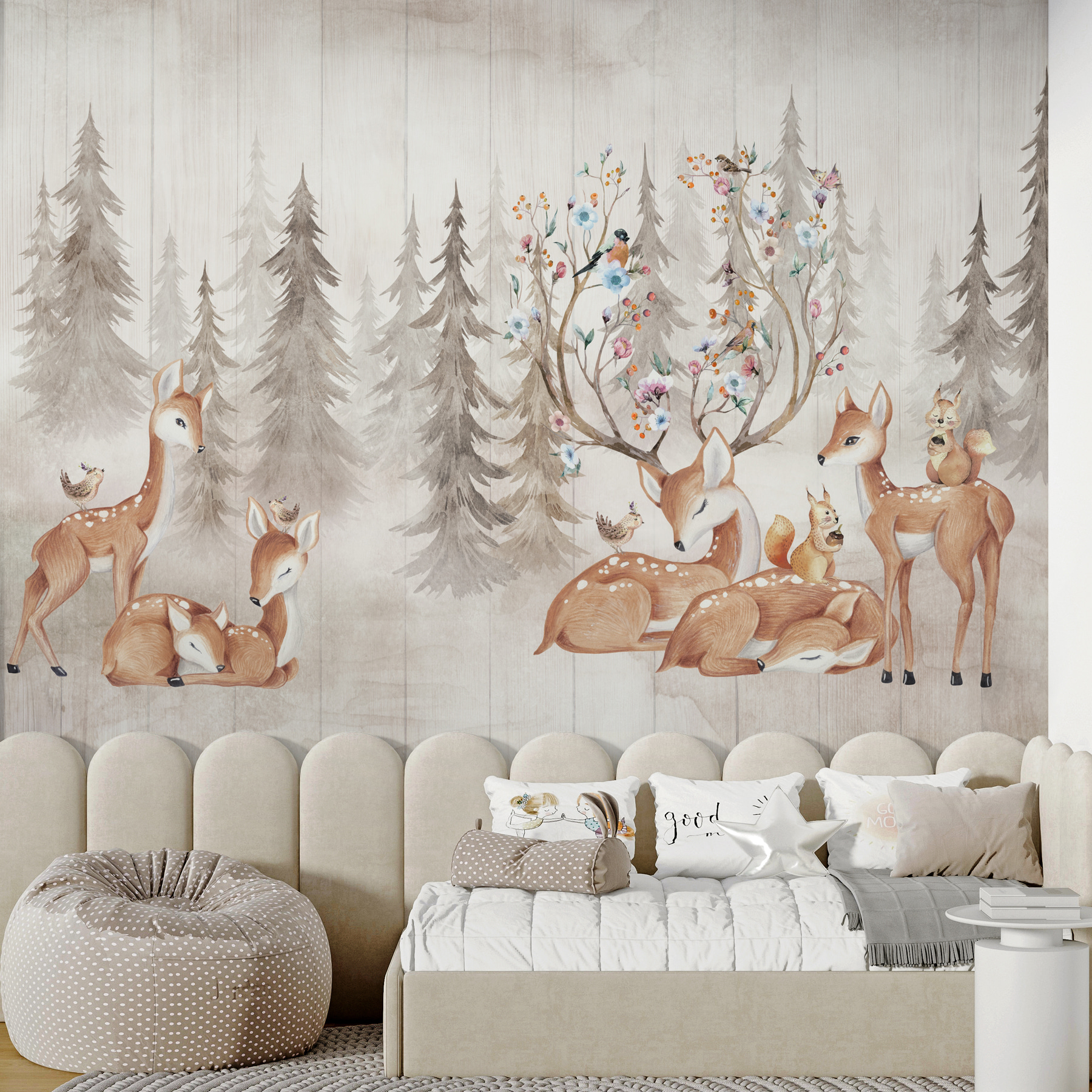 Que vous souhaitiez préparer le terrain pour des histoires de rêve à l’heure du coucher ou simplement apporter une touche fantaisiste à votre maison, cette peinture murale est comme une étreinte amicale et réconfortante de la part de la nature. C’est une belle façon d’apporter un peu de magie et de tranquillité dans votre vie quotidienne.