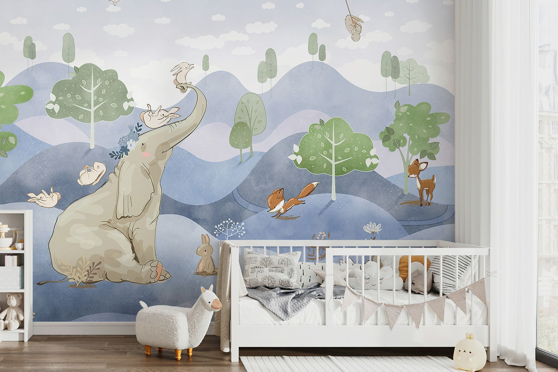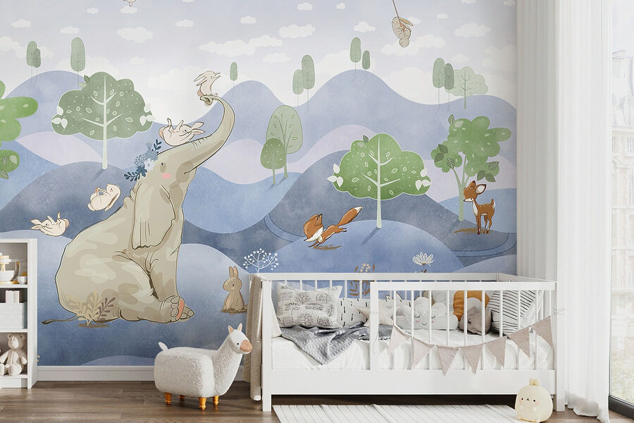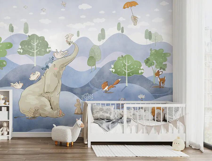 Imaginez transformer la chambre d’un enfant en un pays des merveilles fantaisiste grâce à cette fresque murale ludique. Un adorable lapin tenant une fleur, accompagné de joyeux animaux tels qu’un éléphant, un renard et un cerf, est tout droit sorti d’un livre d’histoires. Les couleurs pastel et le paysage de rêve apportent un sentiment de calme et de joie, parfait pour éveiller l’imagination des petits. Imaginez des histoires à dormir debout qui prennent vie ou des après-midi paresseux passés à rêver. Laissez cette peinture murale égayer n’importe quel espace, en créant un havre magique où l’aventure et la paix coexistent.