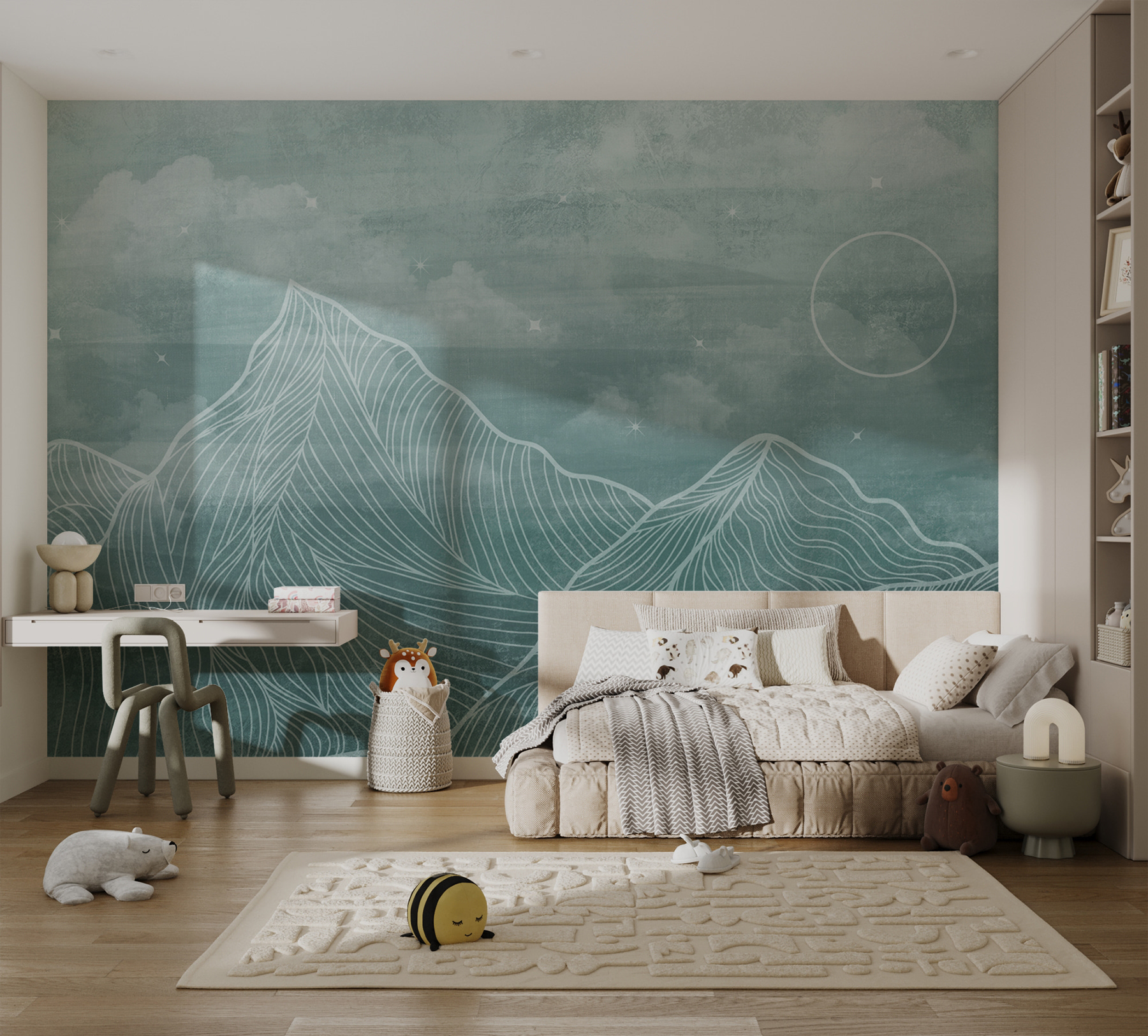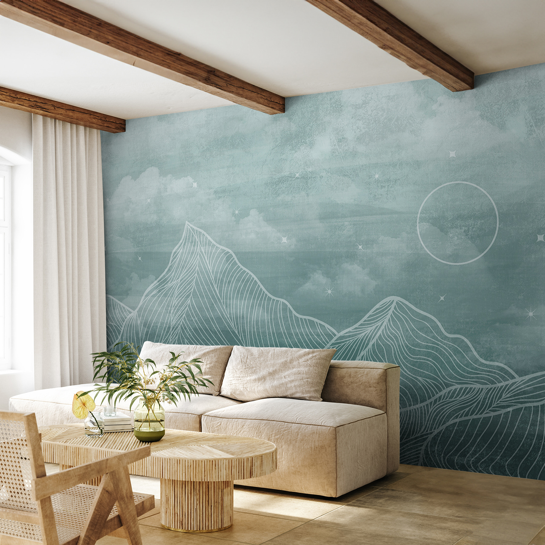Si vous cherchez à ajouter une touche de magie sereine à votre espace, cette peinture murale “Cercle blanc dans un cercle” est comme une invitation au rêve. Imaginez les montagnes douces et brumeuses, avec leurs lignes douces et fluides, qui vous attirent dans une retraite tranquille. Parfait pour un coin douillet ou même un mur d’accent dans votre salon.
