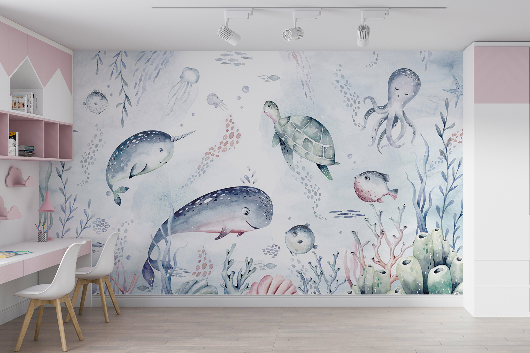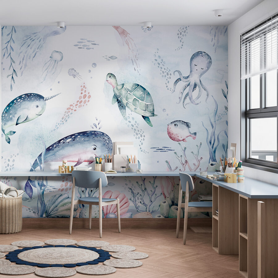 Bonjour à tous ! Avez-vous déjà imaginé vous plonger dans un monde sous-marin de rêve chaque fois que vous entrez dans une pièce ? Eh bien, cette peinture murale à l’aquarelle est là pour vous aider. Il s’agit d’une touche fantaisiste de magie océanique, avec une tortue super cool qui glisse dans une mer enchanteresse. Parfait pour les enfants, les nourrissons et tous ceux qui aiment l’ambiance du bord de mer. Les couleurs sourdes mais vives créent une scène océanique sereine, presque ludique, avec d’adorables créatures marines flottant autour, donnant l’impression que c’est l’océan lui-même qui a embrassé vos murs. Ce n’est pas seulement un décor, c’est une mini-aventure qui ne demande qu’à être vécue !