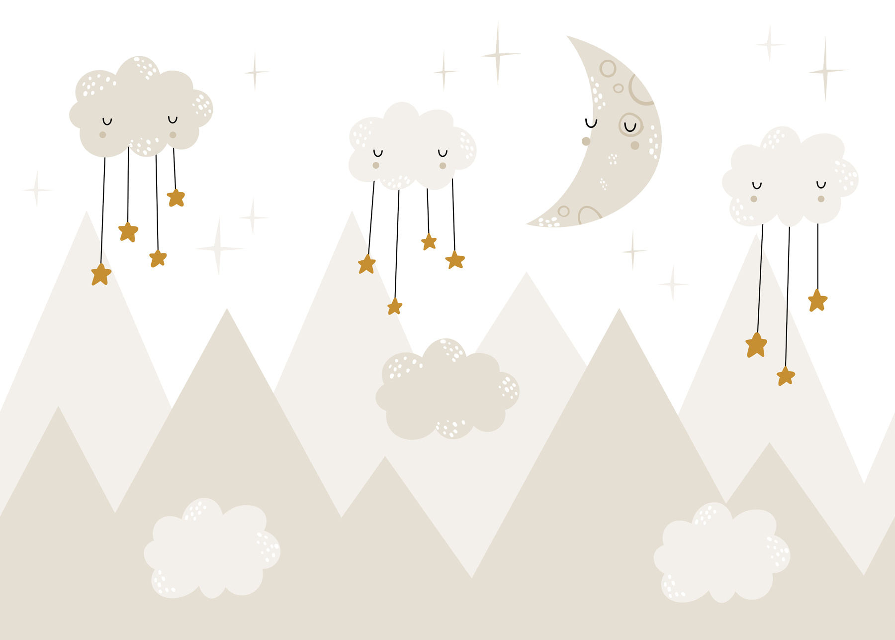 Imaginez une fresque de ciel nocturne de rêve, avec une lune endormie et des nuages douillets parsemés d’étoiles, qui brillent doucement au-dessus des sommets montagneux. C’est comme si vous entriez dans une histoire fantaisiste à l’heure du coucher ! Parfaite pour une chambre d’enfant, cette peinture murale allie imagination et confort – elle stimule la créativité de l’enfant tout en créant une ambiance apaisante. Pensez à tous ces doux rêves et à tous ces rires à l’heure du coucher. Et qui n’aimerait pas s’endormir sous une scène aussi charmante et apaisante ? C’est plus qu’un simple décor, c’est une petite aventure, directement sur le mur.