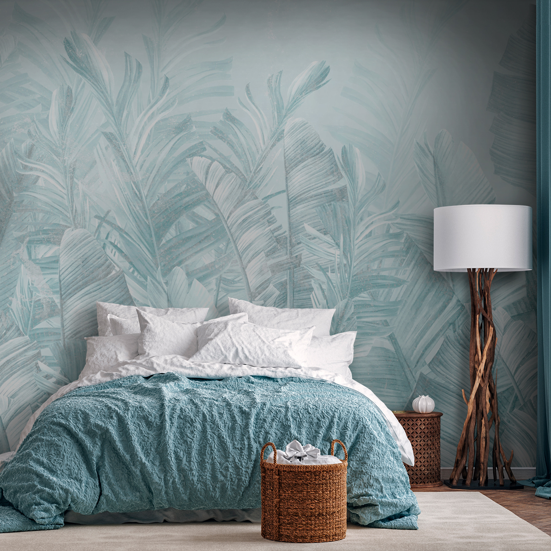Transformez votre espace avec cette peinture murale de feuilles tropicales aux teintes délicieusement douces. Imaginez que vous entrez dans une pièce qui ressemble à une escapade dans un paradis luxuriant, sans les piqûres de moustiques. Cette peinture murale apporte une ambiance sereine et tranquille, parfaite pour se détendre après une longue journée. Imaginez des soirées cinéma douillettes ou des brunchs ensoleillés, entourés de verts doux et de textures délicates qui chuchotent presque : “Détendez-vous, vous êtes sur l’île maintenant.” C’est le genre de toile de fond qui rend chaque moment spécial, et soyons honnêtes, qui n’a pas besoin d’un peu plus de cela ? Alors pourquoi ne pas ajouter une touche de calme tropical à vos murs ?