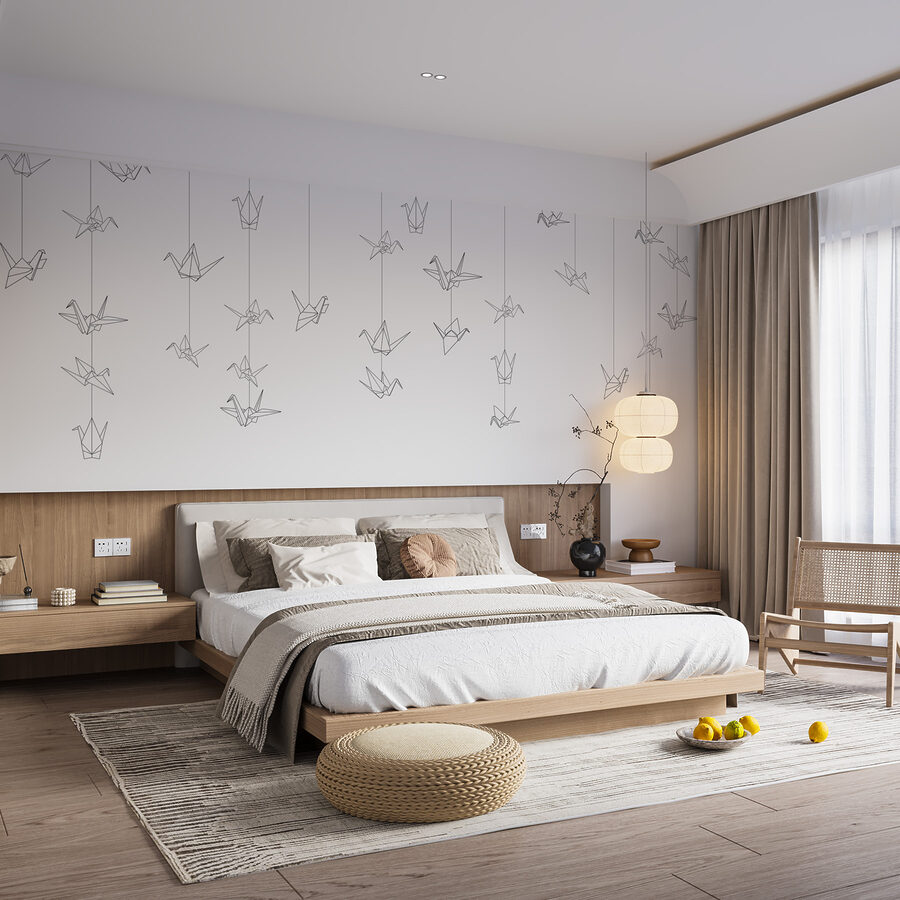 Vous avez déjà pensé à donner une touche artistique à vos murs avec un minimum d’effort ? Jetez un coup d’œil à cette peinture murale d’oiseaux en noir et blanc. C’est comme si vous aviez un morceau de votre carnet de croquis préféré agrandi à la taille réelle. Les lignes simples lui confèrent une ambiance élégante et moderne. Imaginez-la dans votre salon ou votre espace de travail – le genre d’œuvre qui vous fait prendre une minute pour respirer et vous détendre. De plus, il y a quelque chose de très apaisant dans ces grues en papier qui pendent doucement, comme si elles étaient en vol. C’est le mélange parfait d’artistique et de zen. Si vous avez un penchant pour la décoration unique qui suscite la joie (oui, un moment Marie Kondo), cette peinture murale est tout à fait dans vos cordes.