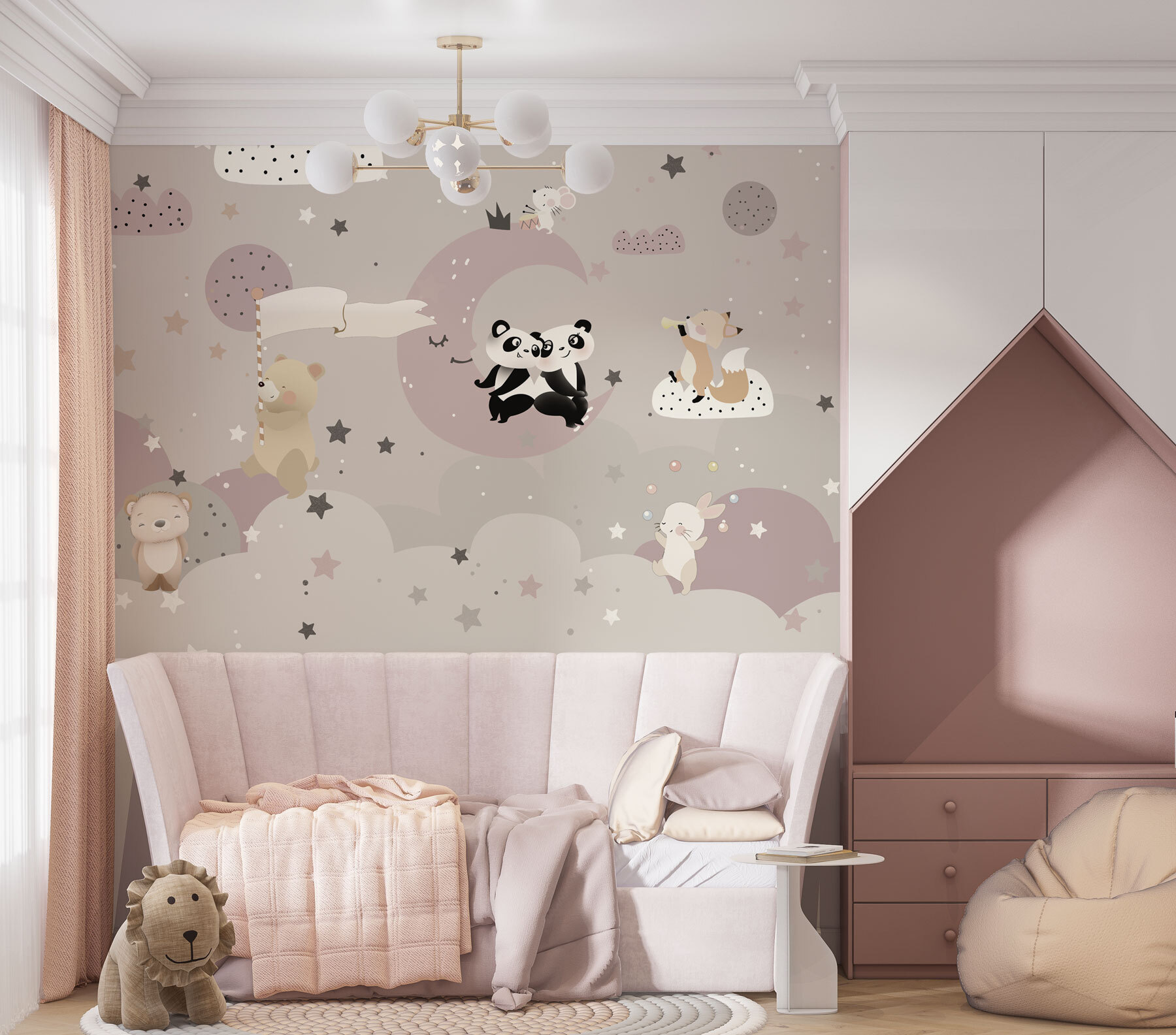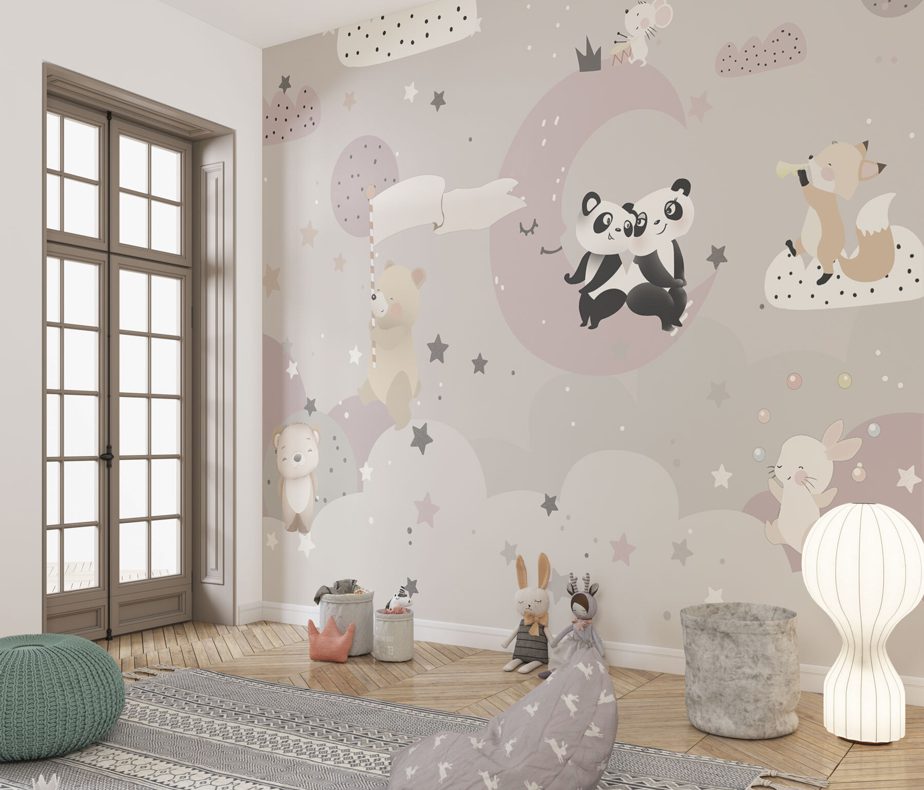 Vous cherchez à ajouter une touche de fantaisie à la chambre de votre enfant ? Ce “Murale Cartoon of a Bear” est exactement ce qu’il vous faut ! Imaginez un ciel nocturne douillet parsemé d’étoiles pastel et d’adorables amis ours – le charme opère instantanément. Parfait pour les chambres d’enfants ou les salles de jeux, les tons doux de cette peinture murale et les charmants personnages créent une atmosphère de rêve et d’apaisement. Imaginez votre enfant se réveillant avec un ours qui agite un drapeau, riant devant des pandas ou apercevant un petit renard qui joue de la musique. C’est un mur qui raconte une histoire, invitant à une imagination sans fin et à des rêves ludiques. De plus, c’est un sujet de conversation amusant : vos amis vous demanderont où vous avez trouvé une œuvre aussi charmante. Croyez-moi, il ne s’agit pas seulement d’une peinture murale, mais de toute une ambiance pour l’espace de votre enfant.
