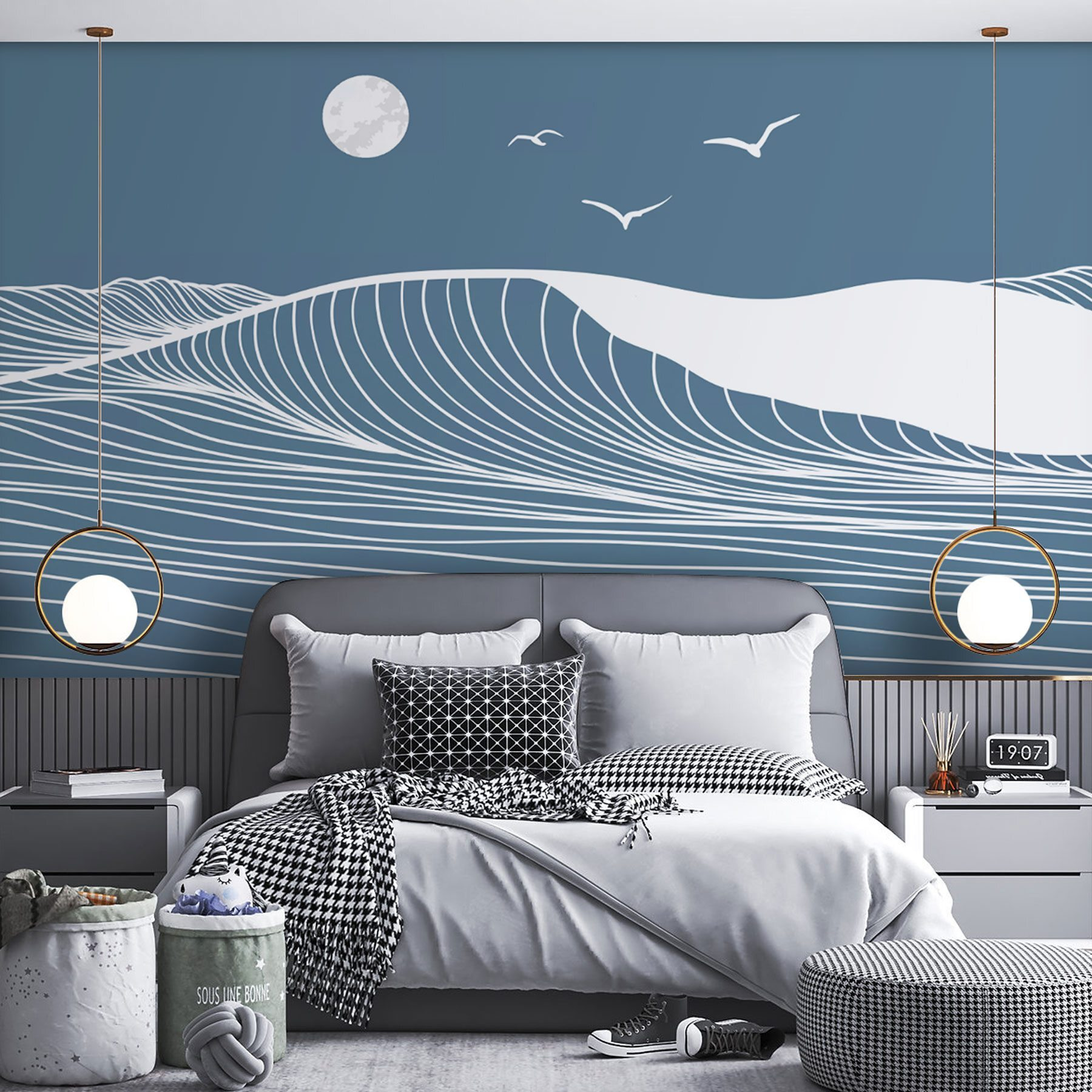 Jetez un coup d’œil à cette étonnante peinture murale, “Lignes blanches sur fond bleu”. Imaginez-la dans votre salon ou votre bureau : c’est comme si vous regardiez dans un abîme bleu de rêve. Ces lignes blanches tourbillonnantes ? Elles font penser à de douces vagues, n’est-ce pas ? L’ambiance est paisible, comme si vous étiez sur une plage sereine au coucher du soleil. Parfait pour les espaces où l’on souhaite ajouter une touche de calme et de créativité. Qu’il s’agisse d’embellir un mur terne ou de créer un point focal, cette peinture murale vous soutient. Plongez dans la tranquillité à chaque fois que vous l’apercevez. C’est comme une bouffée d’air frais de l’océan, non ? 🌀🌊