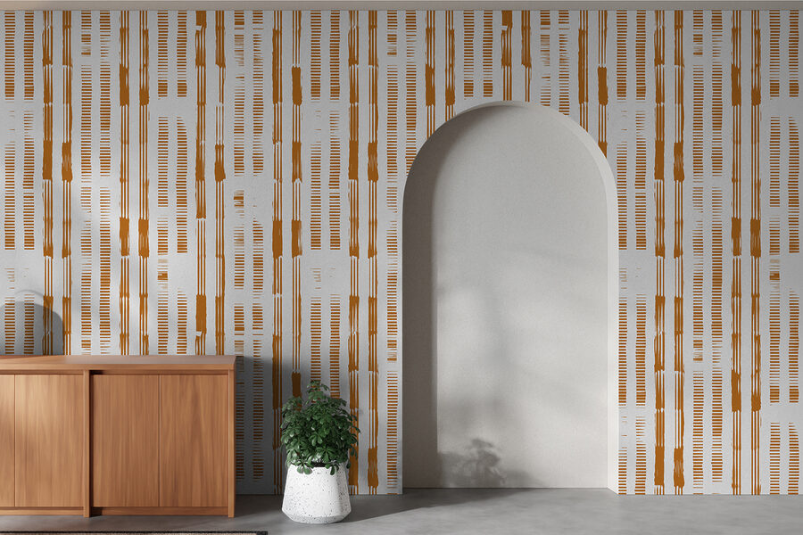 Jetez un coup d’œil à cette peinture murale accrocheuse avec un motif rayé vertical et des espaces intentionnels – parfait pour ajouter une touche de modernité à votre espace ! Il se situe entre les motifs abstraits et rayés, ce qui en fait un choix remarquable pour tous ceux qui recherchent quelque chose d’unique et de polyvalent. Imaginez-le dans votre salon ou votre bureau : les lignes épurées et le motif organisé sont à la fois ludiques et sophistiqués. De plus, les tons orange terreux apportent une sensation de chaleur et de confort qui est tout simplement invitante.