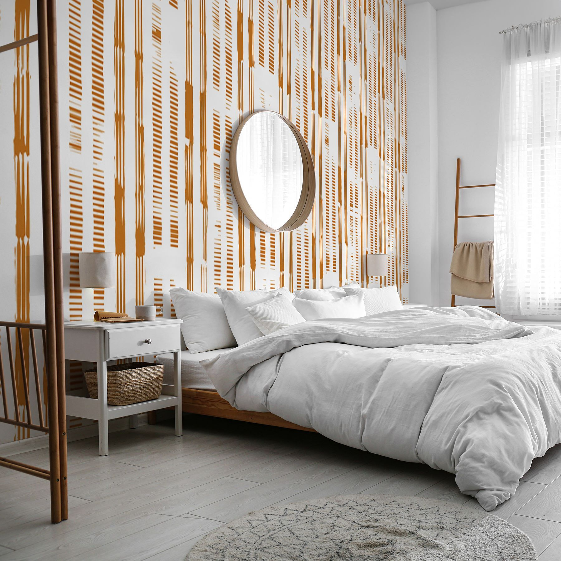 Jetez un coup d’œil à cette peinture murale accrocheuse avec un motif rayé vertical et des espaces intentionnels – parfait pour ajouter une touche de modernité à votre espace ! Il se situe entre les motifs abstraits et rayés, ce qui en fait un choix remarquable pour tous ceux qui recherchent quelque chose d’unique et de polyvalent. Imaginez-le dans votre salon ou votre bureau : les lignes épurées et le motif organisé sont à la fois ludiques et sophistiqués. De plus, les tons orange terreux apportent une sensation de chaleur et de confort qui est tout simplement invitante.