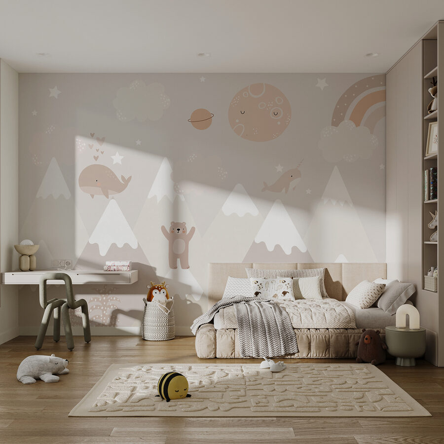 Cette délicieuse peinture murale “Baleine de dessin animé avec des étoiles” est comme un rêve fantaisiste ! Parfaite pour une chambre d’enfant, une chambre de bébé ou tout autre espace ludique, elle apporte une ambiance douillette et magique qui est à la fois apaisante et amusante. Imaginez vos enfants s’endormir sous une lune souriante, avec des baleines et des narvals sympathiques flottant parmi les étoiles – de la pure magie de l’histoire à dormir debout ! Les doux tons pastel et les personnages adorables créent une atmosphère sereine et invitante, ce qui en fait une toile de fond idéale pour les câlins ou les réunions de jeux. Laissez-vous charmer et laissez cette scène enchanteresse susciter la joie et la créativité dans votre espace !