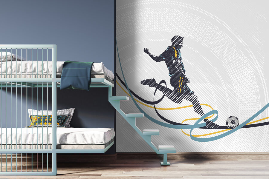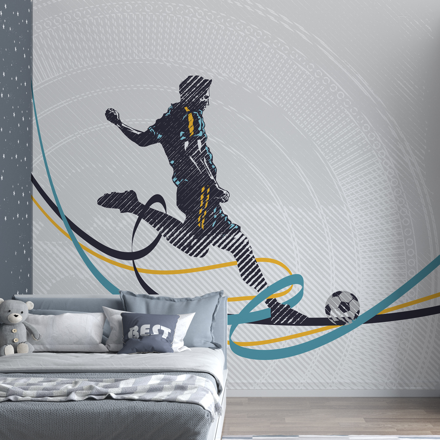 Bonjour à tous ! Tu as un mur vide qui ne demande qu’à avoir de la personnalité ? Regarde ça – il s’agit d’une peinture murale d’un mec qui tape dans un ballon de foot. Plutôt dynamique, non ? Cette œuvre respire l’énergie et le mouvement, comme si vous pouviez entendre la foule rugir. Imaginez-la dans votre caverne d’homme ou même dans la salle de jeux de votre enfant – elle ne manquera pas d’inspirer de sérieux rêves de football !
