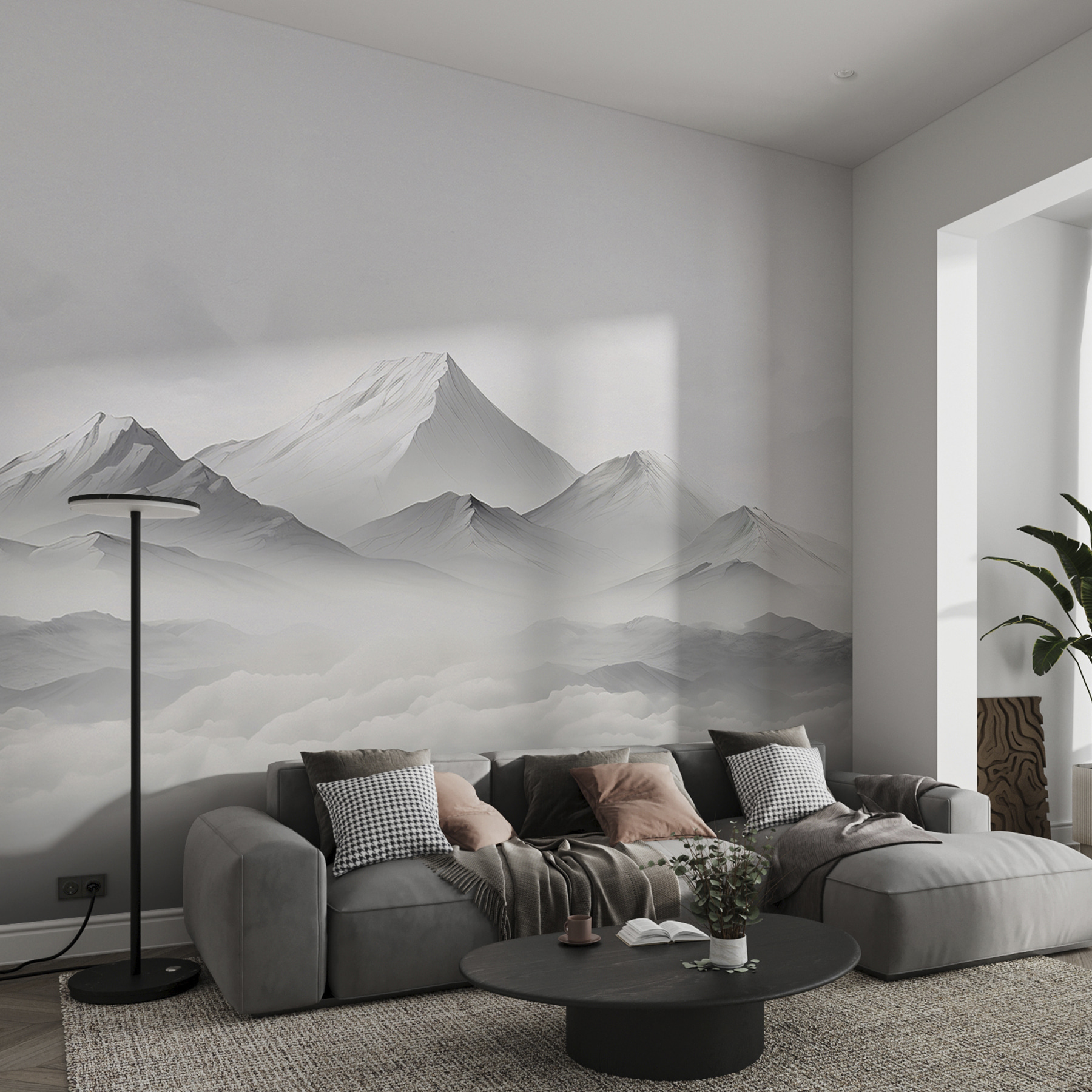 Transformez votre espace en une retraite paisible grâce à cette superbe peinture murale représentant une montagne enneigée surplombant de doux nuages. C’est comme si vous apportiez une tranche de l’extérieur serein dans votre salon. Imaginez-vous en train de vous installer confortablement avec une boisson chaude tout en contemplant cette vue apaisante. Elle est parfaite pour susciter des conversations – pensez à tous ces moments où l’on se dit “N’est-ce pas magnifique ? Les gris doux et les blancs créent une atmosphère aérée qui donne à chaque pièce une impression d’expansion et de sérénité. Parfait pour les amoureux de la nature, il évoque l’aventure tout en gardant une certaine sérénité. Pourquoi ne pas laisser vos murs raconter une histoire d’escapades en montagne et de tranquillité ?